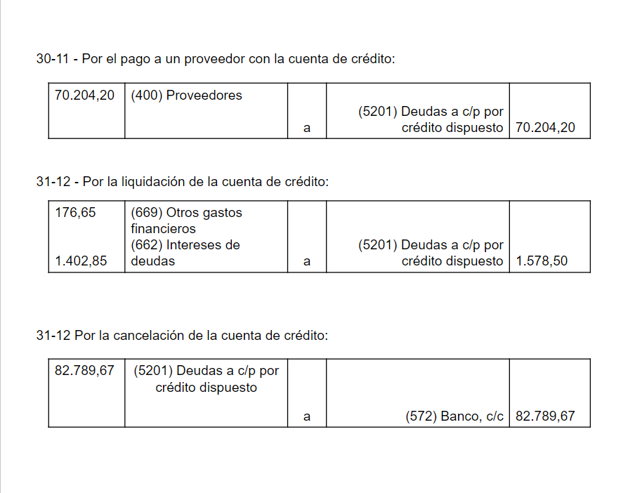 Sólo en los gastos de correo o gastos de administración de la liquidación periódica de la cuenta de crédito, podríamos usar la cuenta (626) Servicios bancarios y similares, ya que se trata de otros gastos que nos cobra el banco por gestiones relacionadas con los servicios del crédito.