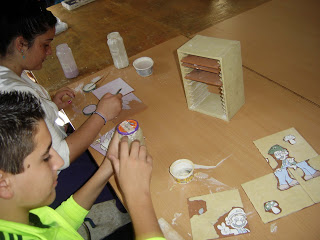 Algunos alumnos de 2º de E.S.O. muestran sus azulejos de cuerda seca. Arriba, sobre la puerta de clase, ya luce el cartel realizado en Proyecto Integrado. Realizado con óxidos, en este cartel también ha participado puntualmente el grupo de 2ºA. Gracias a Lidia y David, ademas de decorar, vamos marcando el territorio. Esperemos que nuestra nueva aula de Artes sea definitiva. De aquí a unos años la tendremos muy bonita; como se merece un aula destinada al arte.