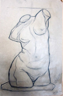 Finalizadas las cinco pruebas iniciales los alumnos de 1º de Bachillerato C (opción de Artes), por fin comienzan sus primeros encajes del natural. El choque es brutal para todos ellos; la mayoría jamás ha dibujado. De pronto se enfrentan a un formato al que no están acostumbrados. Del típico folio pasan a uno cinco veces mayor. Ninguno de ellos ha empleado una técnica artística tradicional. El dibujo académico, es decir, dibujar según las pautas de las academias de Bellas Artes del siglo XIX es para ellos una meta difícil de conseguir. Poco les importa el ARTE con mayúsculas, en realidad, y para desgracia del profesor, sólo persiguen una cosa: hacer copias verosímiles y recibir el elogio de sus compañeros: Qué bien te ha salido, si parece de verdad…