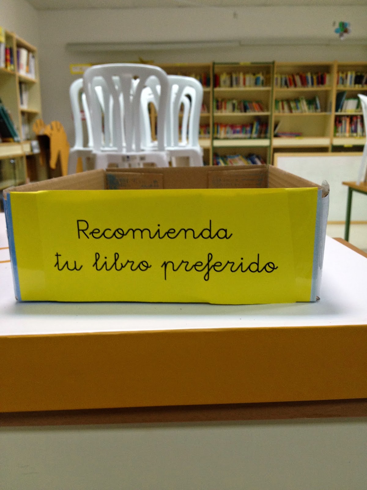 - Además hemos colocado una bandeja para que el alumnado pueda recomendar algún libros que le haya gustado o divertido a sus compañeros/as y una enfermería para los libros que están estropeados.