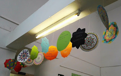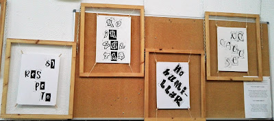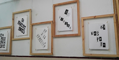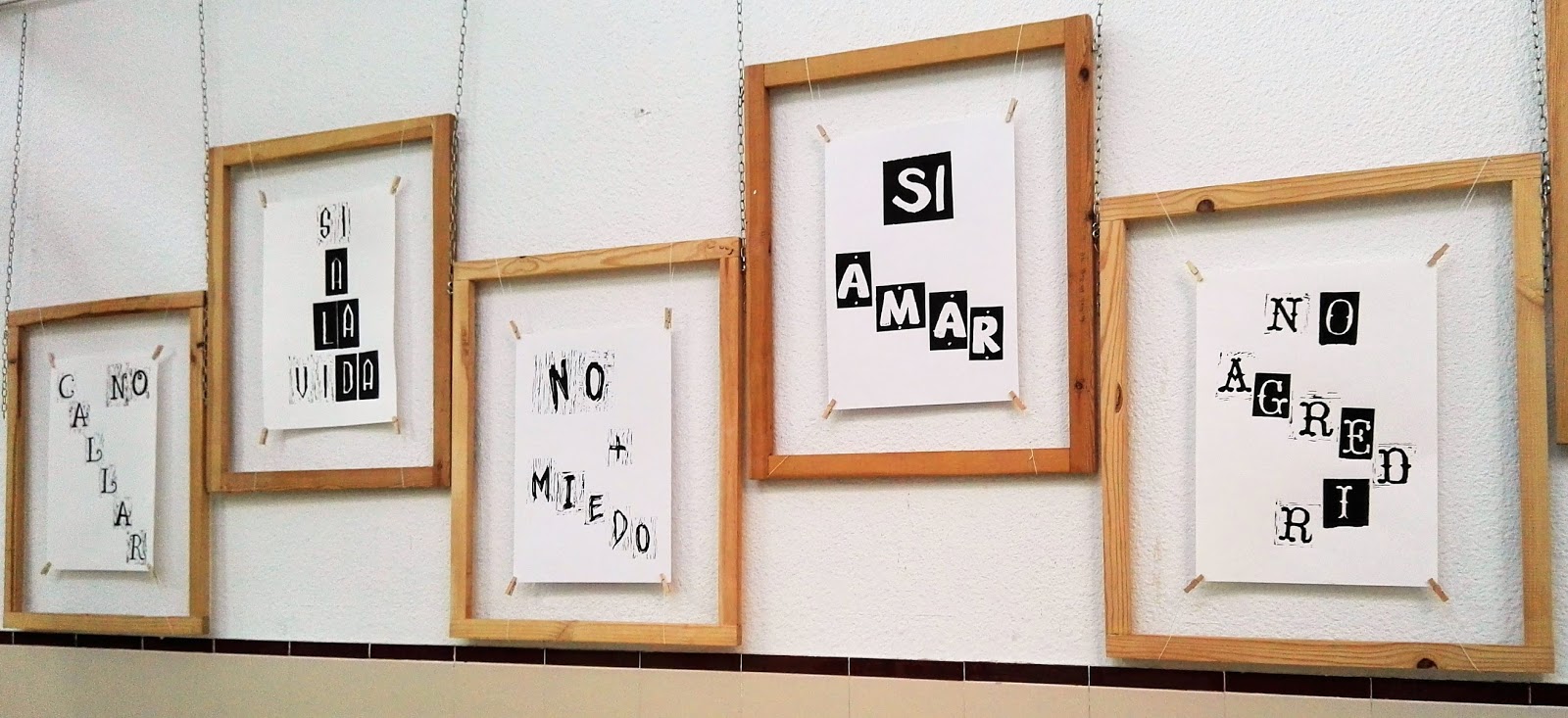Gabriela Diosdado, la mitad del Departamento de EPVA, puso a sus chicos a trabajar y estos grabados con frases alusivas son el magnífico resultado.