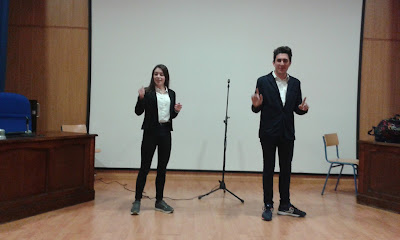 Así, cada grupo ha elegido un tema para defenderlo, pero lo difícil residía en que el tema en cuestión era indefendible, es decir, hemos partido de puntos universalmente aceptados y les hemos dado la vuelta. De esta manera los alumnos han tenido que buscar y rebuscar argumentos y contraargumentos para desbaratar ciertos tópicos aceptados por la sociedad y que normalmente nadie discute. ¿Qué la verdura es buena? No, más bien su consumo es perjudicial. ¿Monogamia? La poligamia es lo mejor. ¿Quieres un animal de compañía? ¡El suricator! ¿A que no sabías que fumar puede traer múltiples beneficios? ¿Para qué estudiar? Estos son algunos de los puntos que se han defendido. ¿Difícil, no creéis? Pues sí, pero nuestros alumnos lo han hecho de maravilla. Han buscando muy buena argumentación (totalmente verídica, nada de inventos) y han trabajado la expresión oral mostrando confianza y plena convicción. La verdad es que algunos hasta nos han hecho dudar.