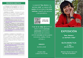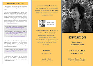 Esta semana concluye la visita del alumando a la exposición de Rosa Montero que lleva instalada un mes en el pasillo central de la planta baja de nuestro instituto. Para visitarla hemos elaborado dos guías didácticas.