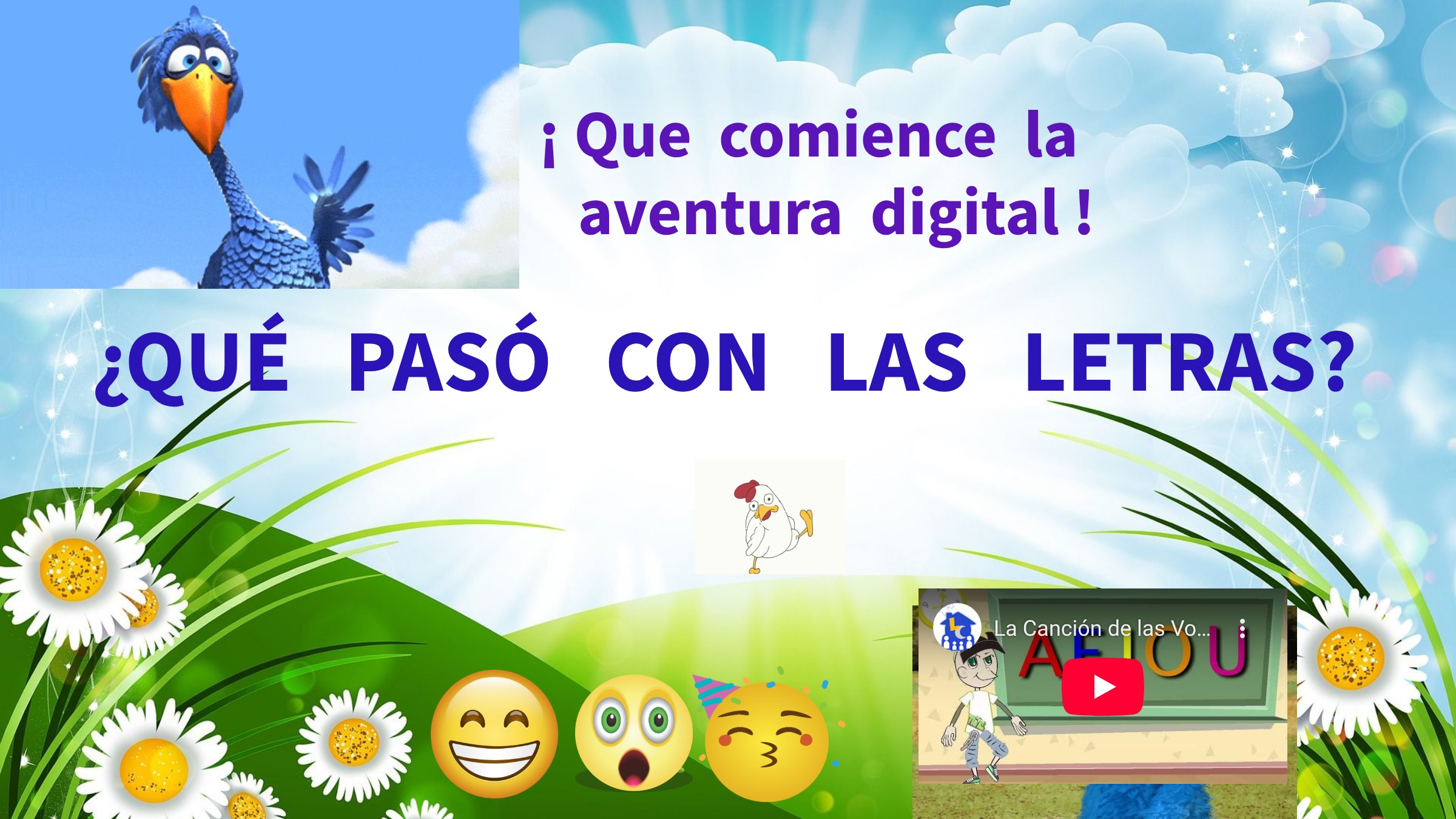 Este taller ha tenido una segunda parte en la que se ha seguido la narración de cuentos de sonidos de letras de forma digital y en cuatro escenarios de aprendizaje: desierto, Polo Norte, espacio y granja. Se adjunta el enlace: