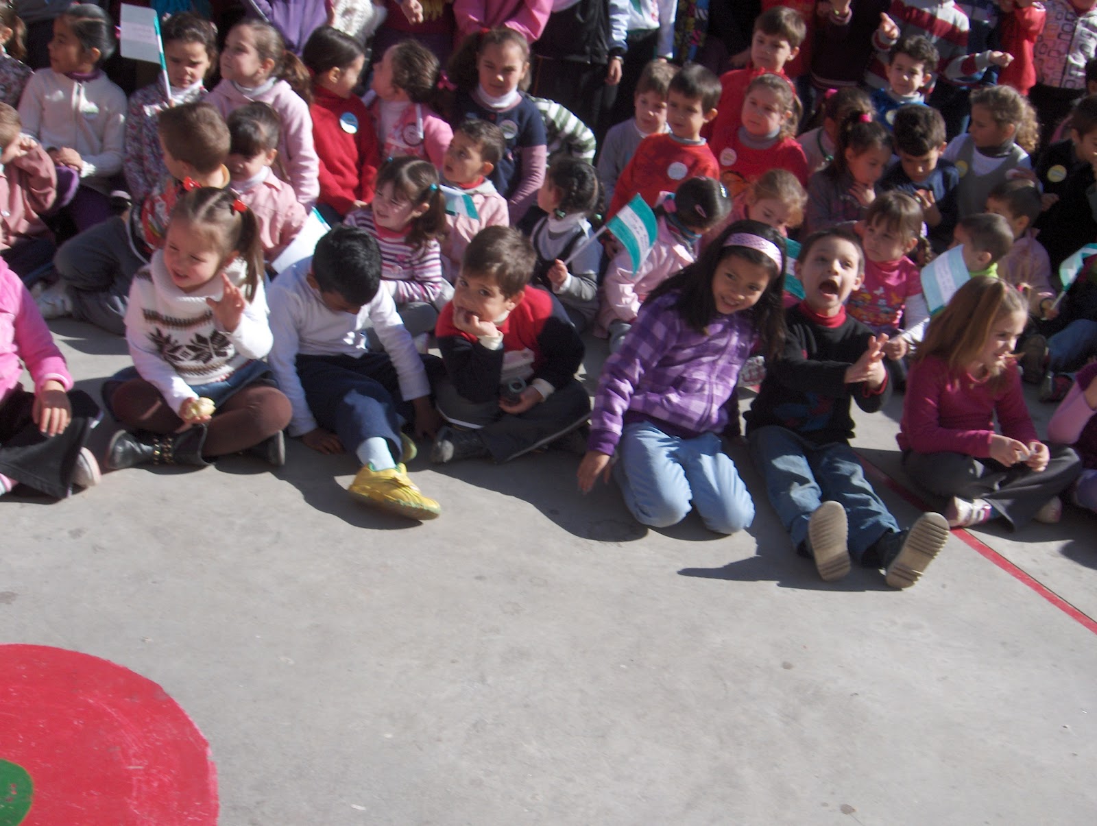 Después salimos al patio para cantar el himno de Andalucía y ver izar las banderas.