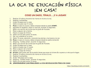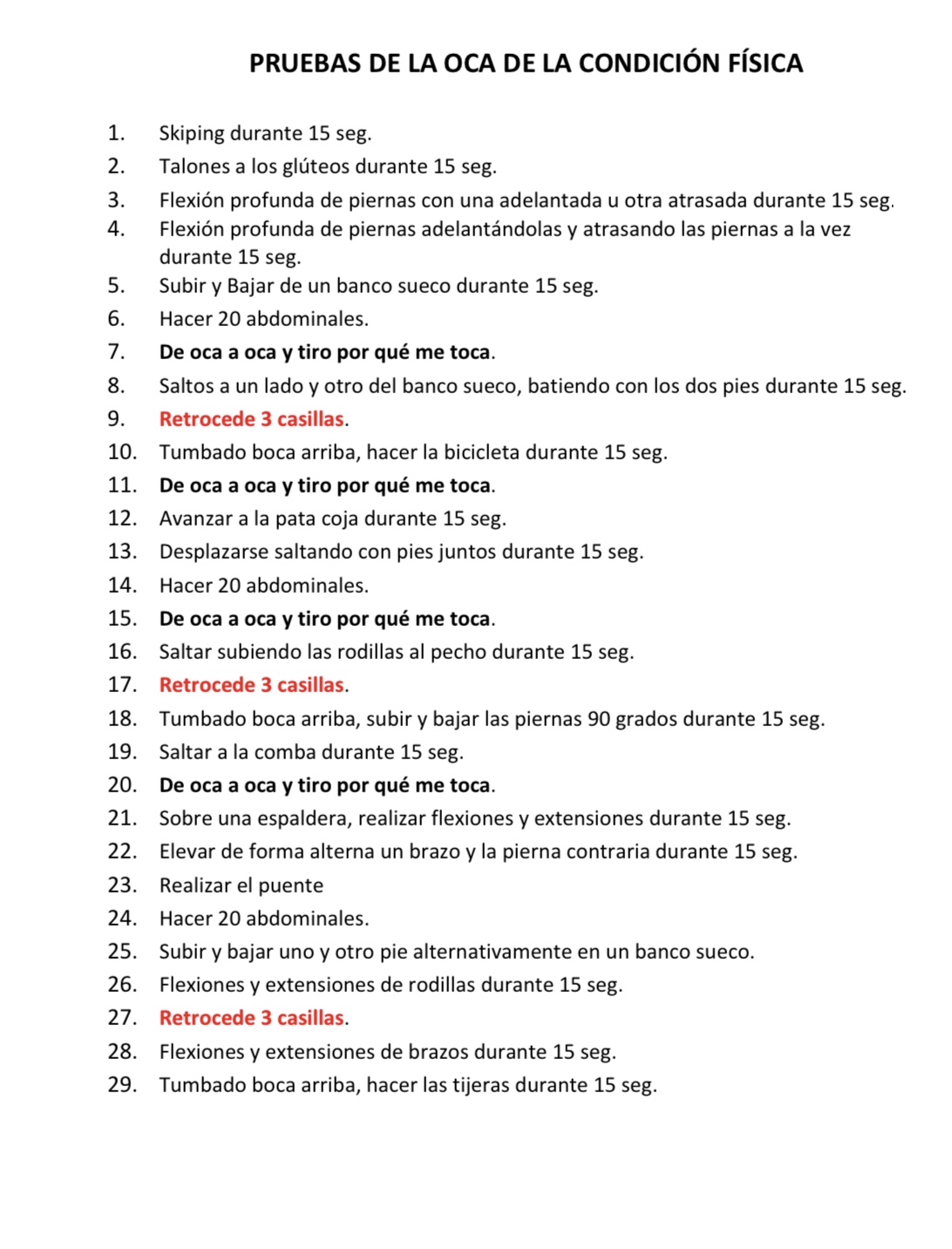 - La oca de la condición física: como podéis ver es una versión más “cañera” que la anterior. Jugad tres partidas al día, solos o con familiares. Seguro que sois capaces 💪🏾💪🏾💪🏾