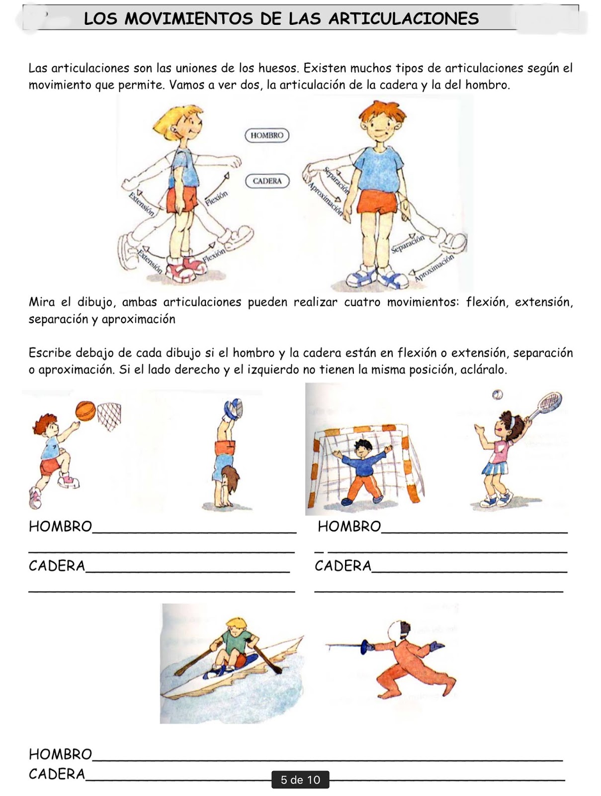 - Ficha de los músculos y movimiento de las articulaciones: con ayuda de internet o preguntando a nuestros familiares rellenamos ambas fichas.