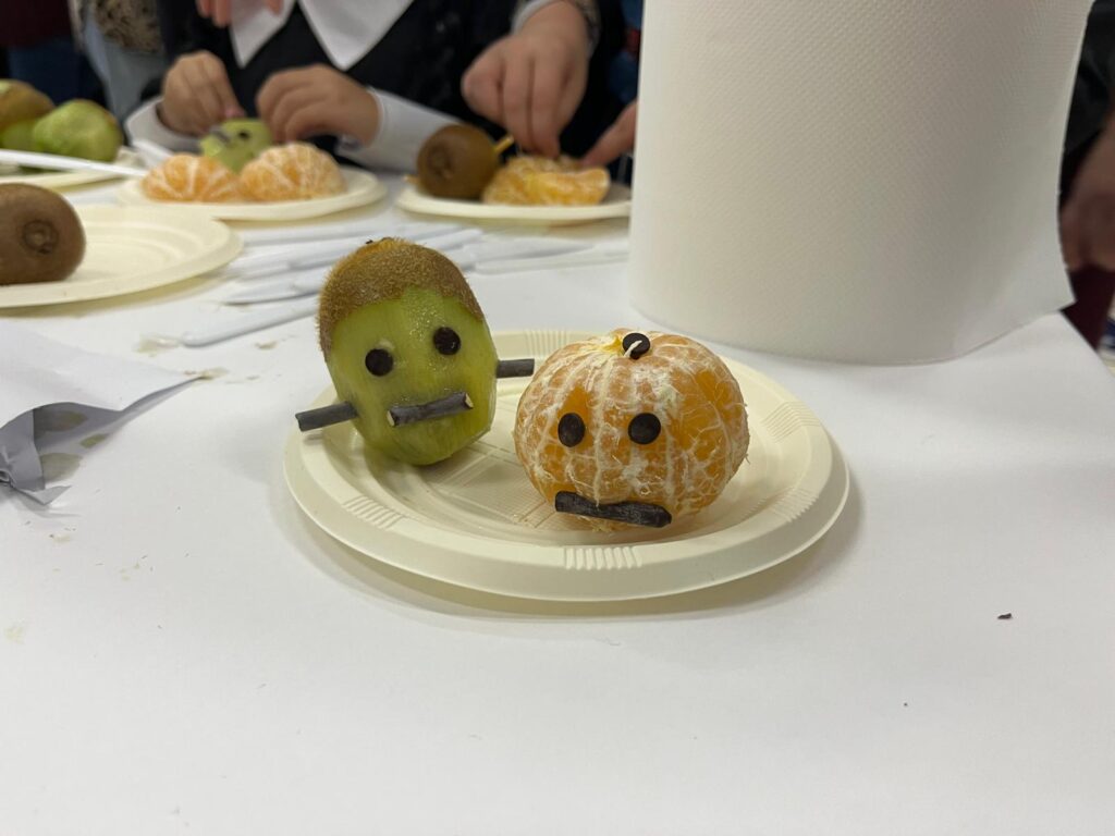 La semana pasada la tuvimos cargada de actividades que otoñales, desde la visita de la castañera para degustar el fruto típico de estas fechas, pasando por la realización de actividades en el área de Religión entorno a la celebración de Todos los Santos, hasta llegar disfrazados de esqueletos, calaveras, vampiros, brujas y zombies el viernes para celebrar Halloween en el cole realizando un taller de frutas y cuentacuentos.