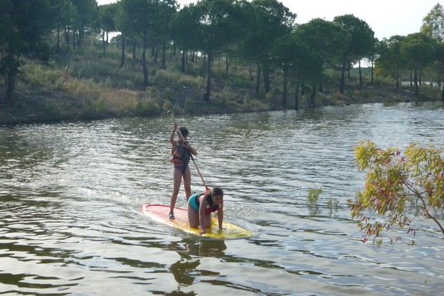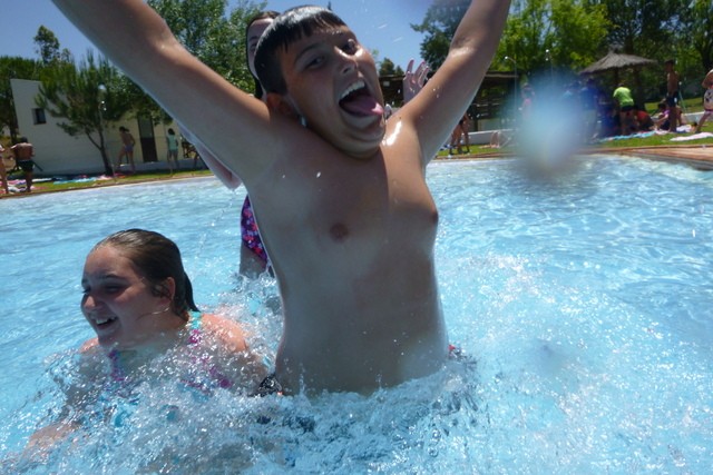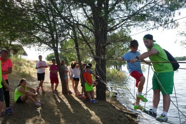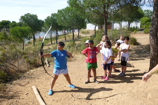 Y Desde que salimos no paramos. En cuanto llegamos al Campamento Waingunga los niños estaban bailando y disfrutando de sus instalaciones. Desde la tirolina, hasta las piraguas, el equilibrio, el tiro con arco, los puentes tibetanos, la ruta en bici y hasta el burro que fuimos a ver dando un gratificante paseo…Todo! Todo ha sido una experiencia inolvidable para los chicos. Lo que más gustó fue la piscina (que era muy adecuada a su edad, tenía mucha seguridad y la temperatura nos acompañó) y esos partidillos contra los monitores. Las veladas nocturnas y estar con sus amigos en las cabañas… A cada momento una actividad divertida e imborrable, como la visita a Doñana o al Rocío. A nosotros nos ha sorprendido sus caritas de felicidad, de sorpresa y de vez en cuando venía uno diciendo: Qué bien lo estamos pasando, yo no me quiero ir! Esas caras son las que hacen que día a día trabajemos con ilusión para ellos. Ha sido un trabajo duro, pero en esas caras está la recompensa.