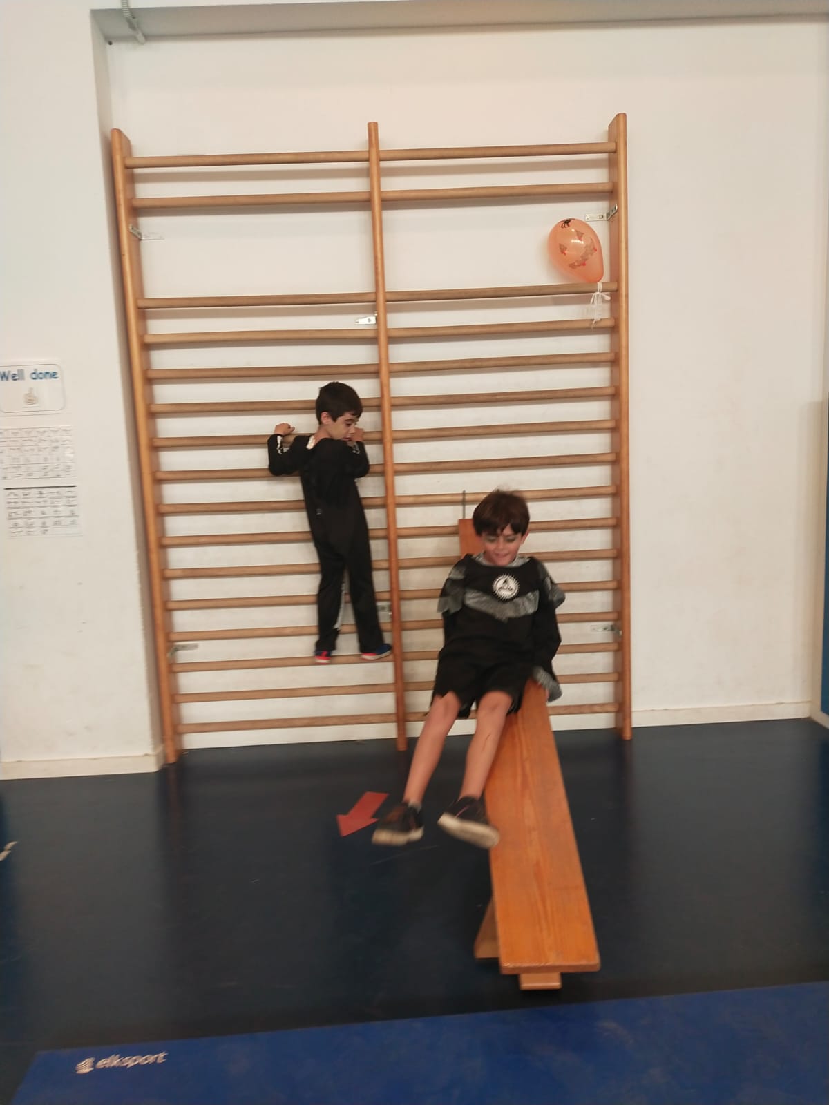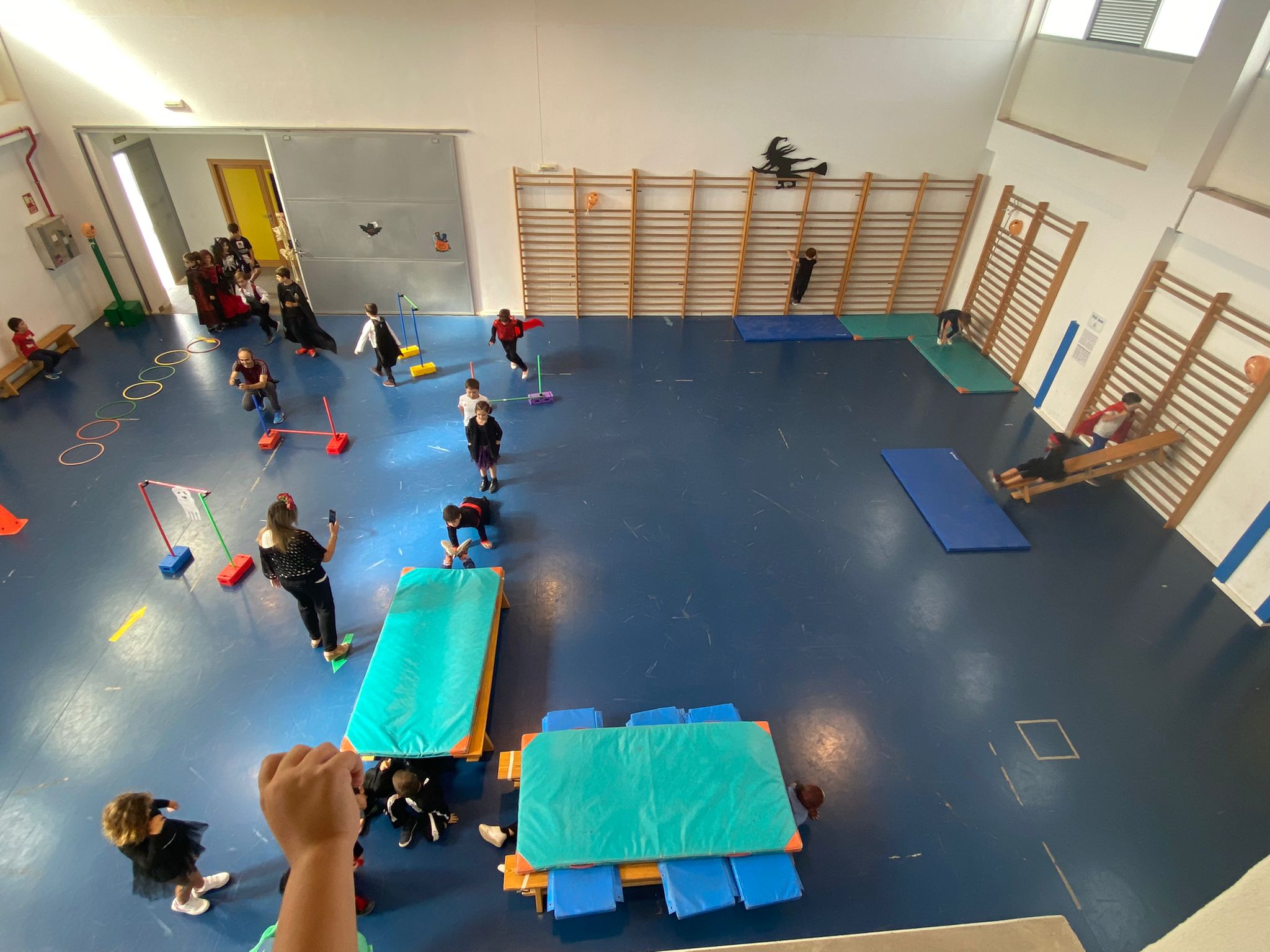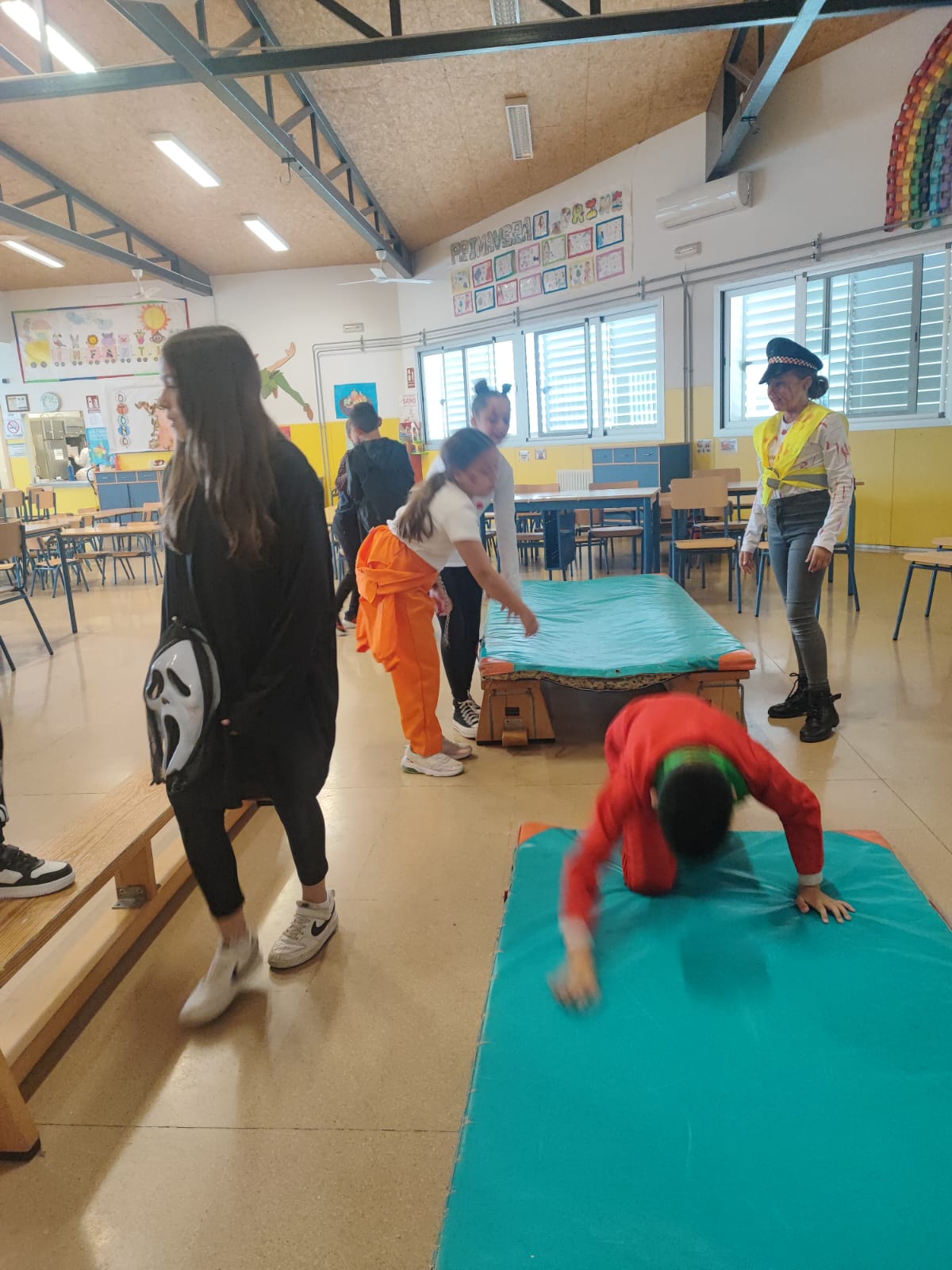El alumnado de 5º de Primaria después de adquirir los aprendizajes de Parkour Educativo lo transforma en una gymkhana para el resto de alumnos/As del colegio teniendo ellos el rol de maestros