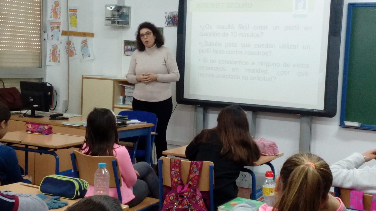 Los/as niños/as de 5º y 6º de primaria, asistieron a la charla sobre Internet Seguro impartido por la compañera Antonia Muñoz.