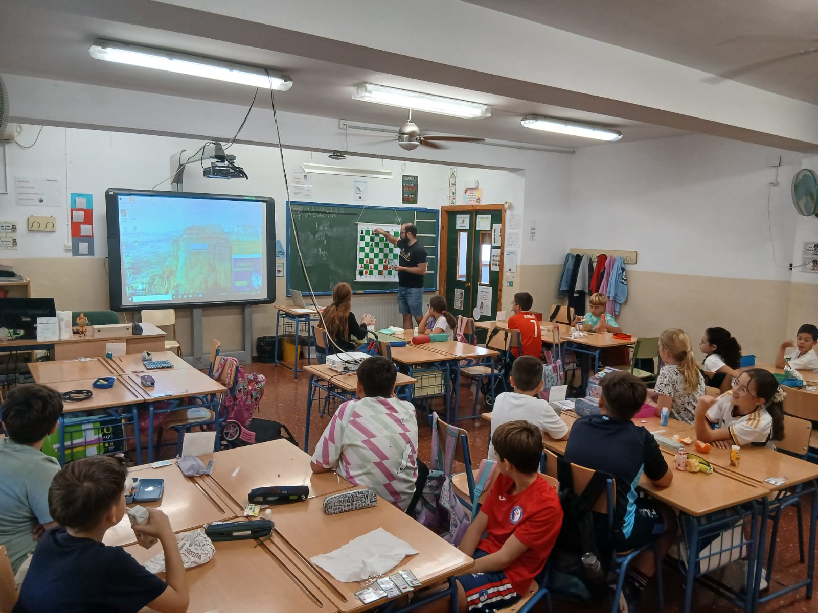 Hoy ha visitado nuestro centro Pablo Fernández, monitor del club de ajedrez «Ajedrez Ruy López Lucena», que con un grupo de alumnos/as en una incursión rápida pero con la ilusión de fomentar este deporte entre nuestro alumnado ha presentado algunas estrategias de jaque mate en situaciones modelo de partidas. ¡Volveremos a verlo en «Chess Intercentros»!