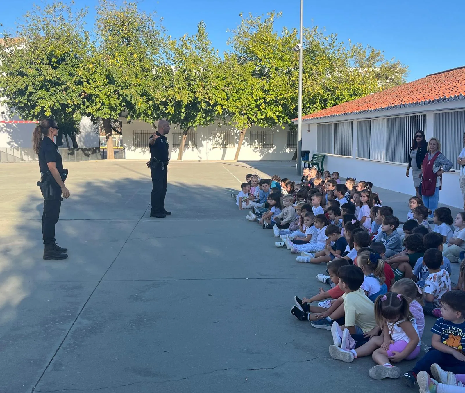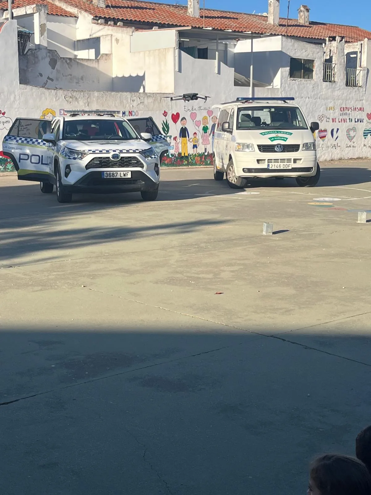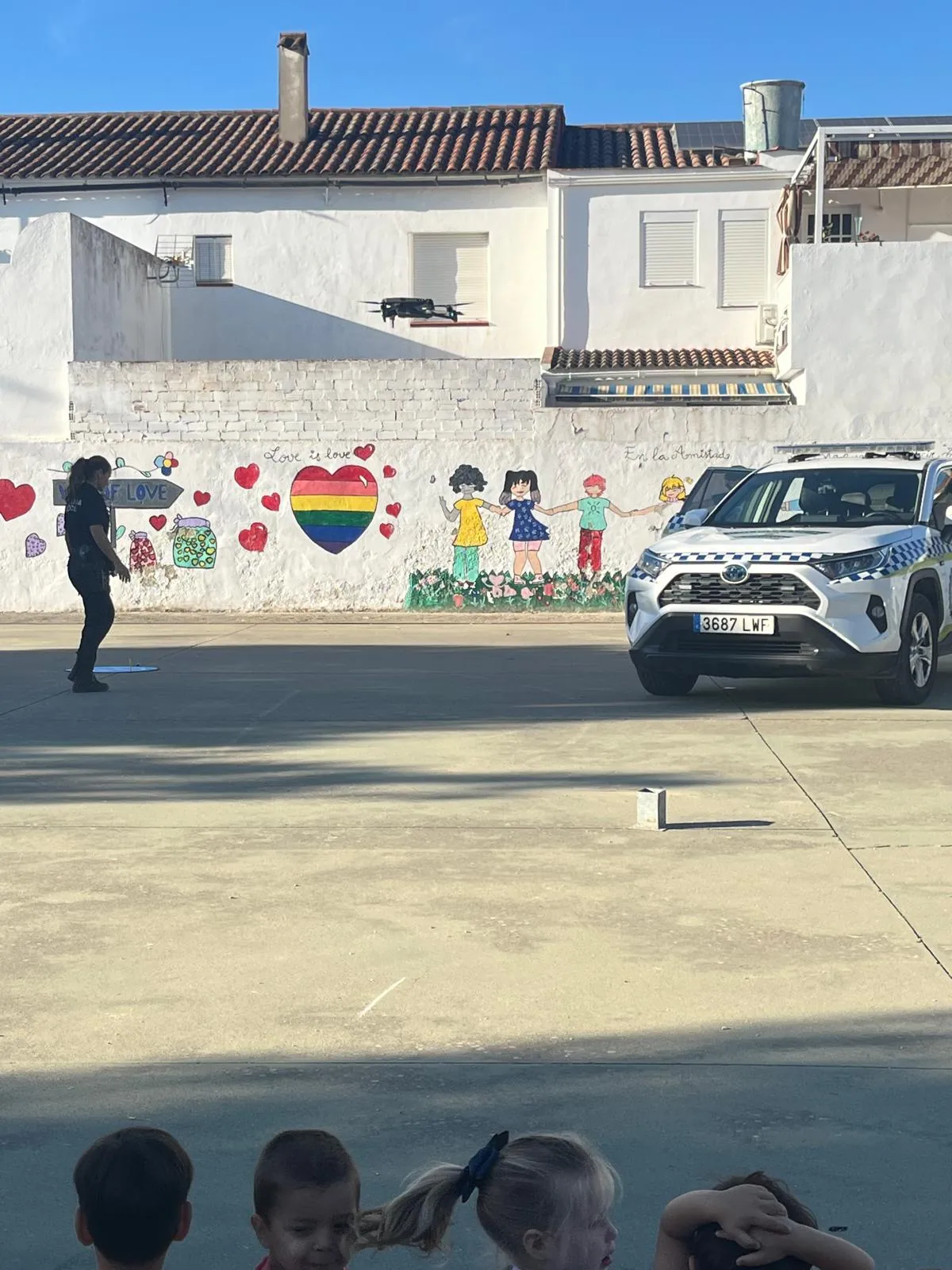 Hoy hemos recibido en el colegio una visita muy especial: la Policía Local de La Carlota ha venido a ofrecer una exhibición en el patio al alumnado de Infantil que nos ha encantado.