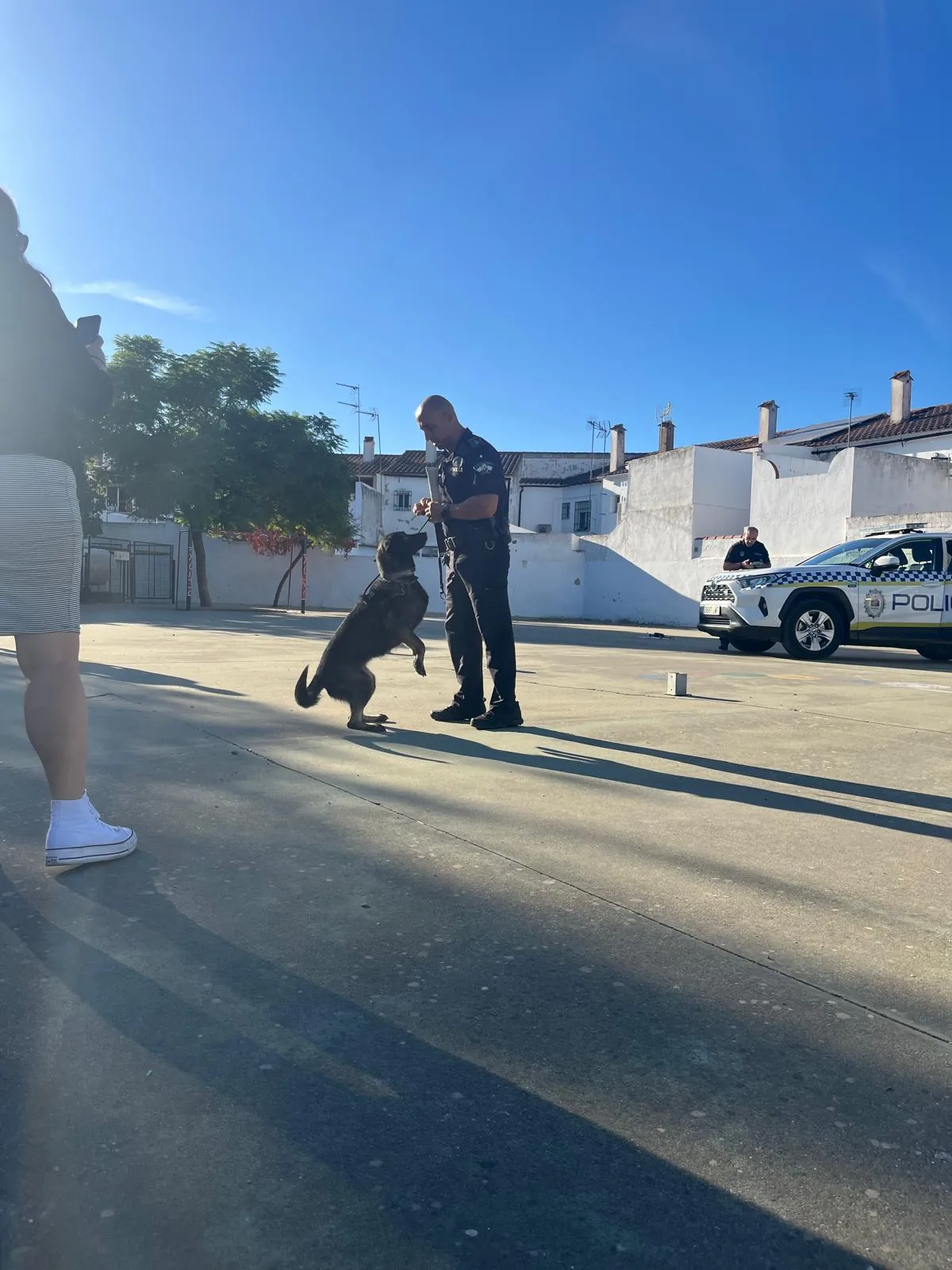 Además, hemos disfrutado muchísimo con la demostración del dron policial, que surcó el cielo del colegio —¡todo un espectáculo!— y con la actuación del perro policía, que nos dejó impresionados siguiendo rastros y obedeciendo las órdenes de su guía.