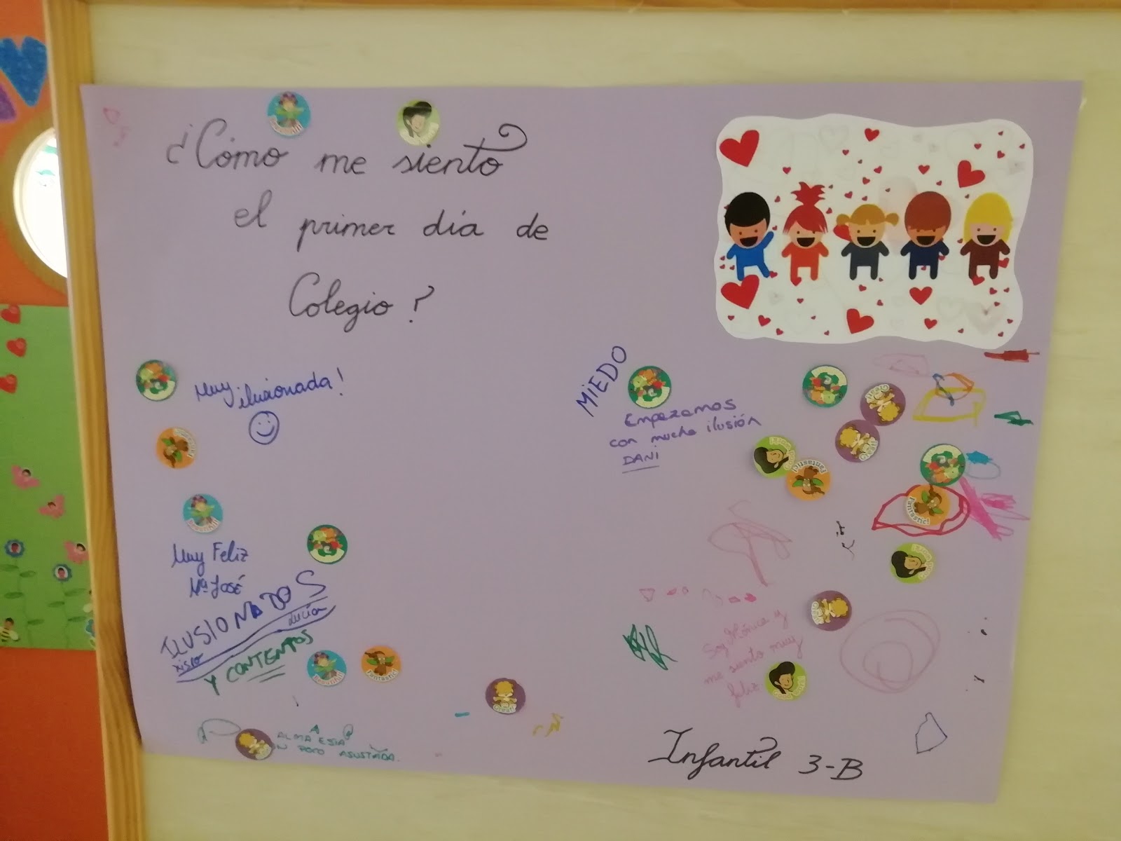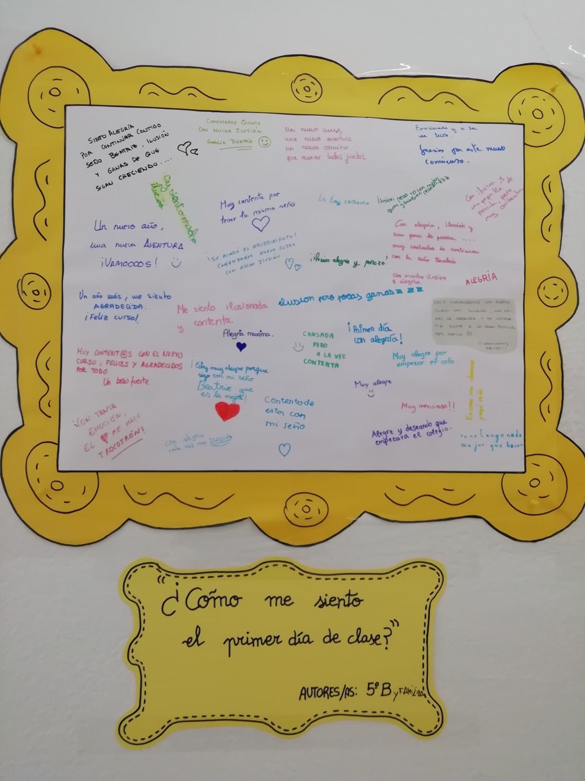 El primer día de colegio quisimos daros una bienvenida especial. Queríamos que las familias y el propio alumnado plasmara en unos carteles los sentimientos y las emociones que ese primer día de clase sentían.