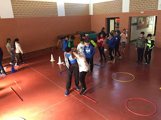 En la mañana de hoy se han realizado en el gimnasio del cole  «Juegos de sensibilización » impartido por nuestra compañera de la ONCE para el alumnado de 6º de primaria.