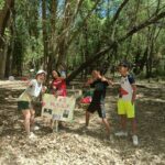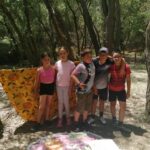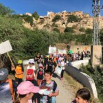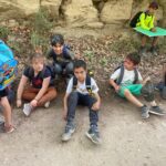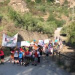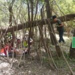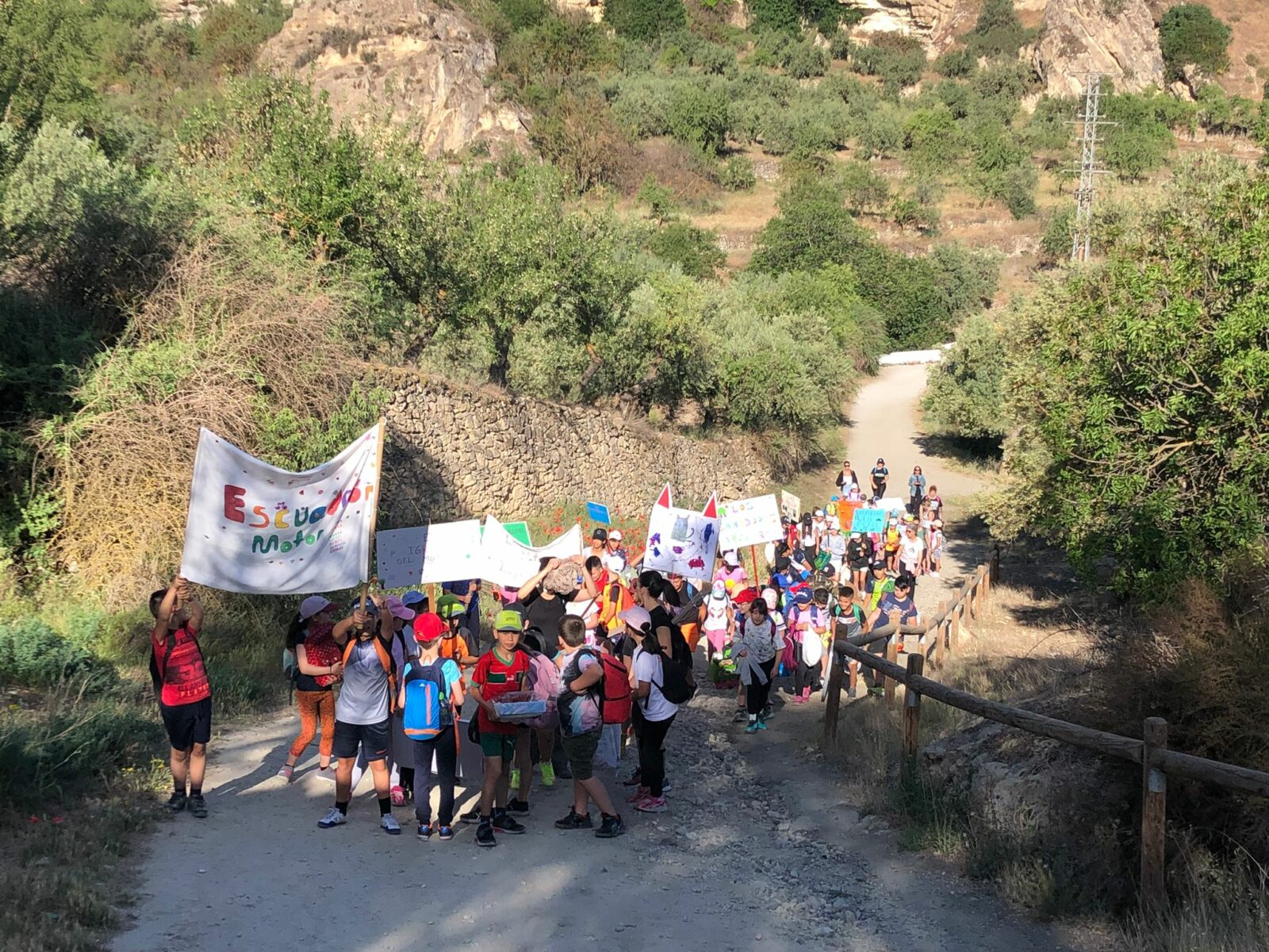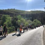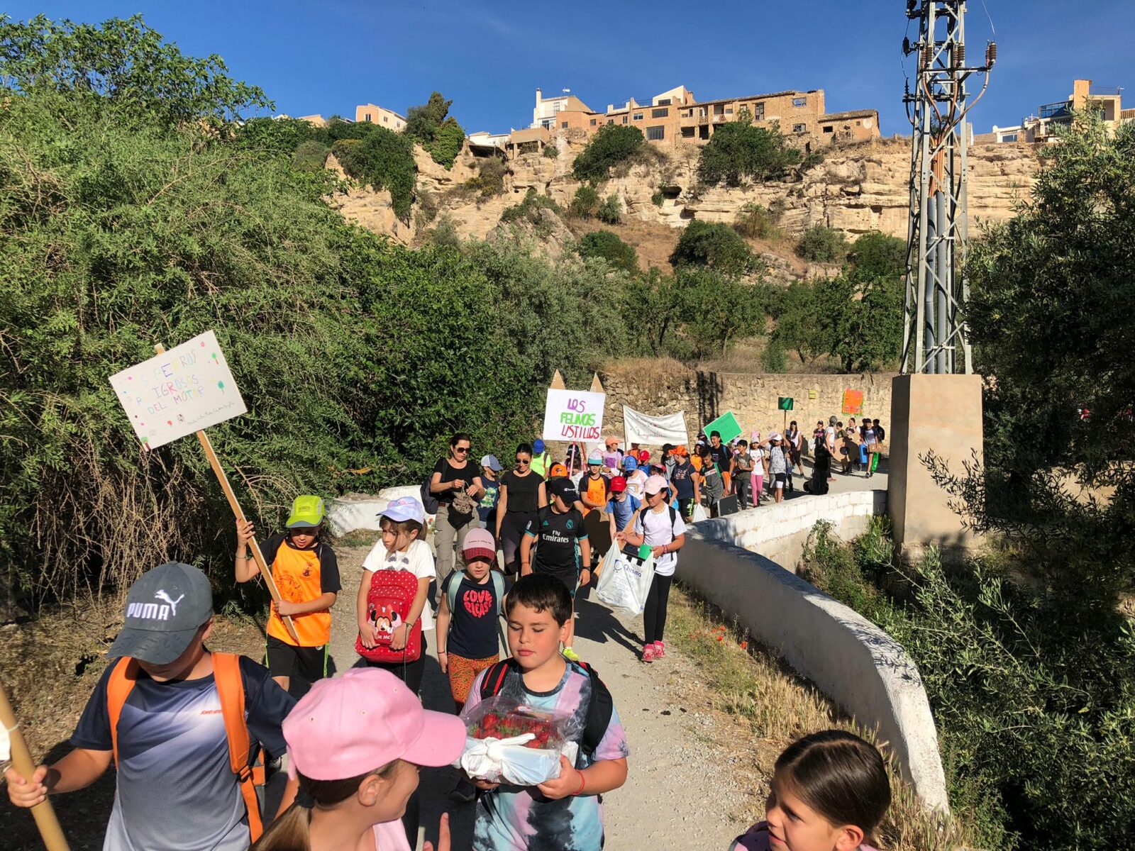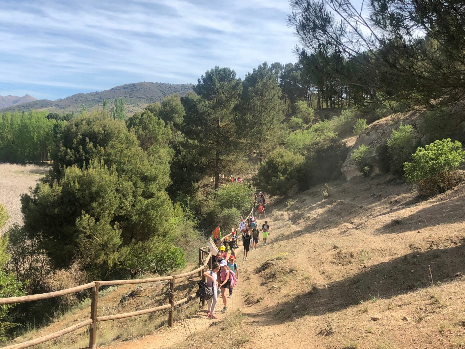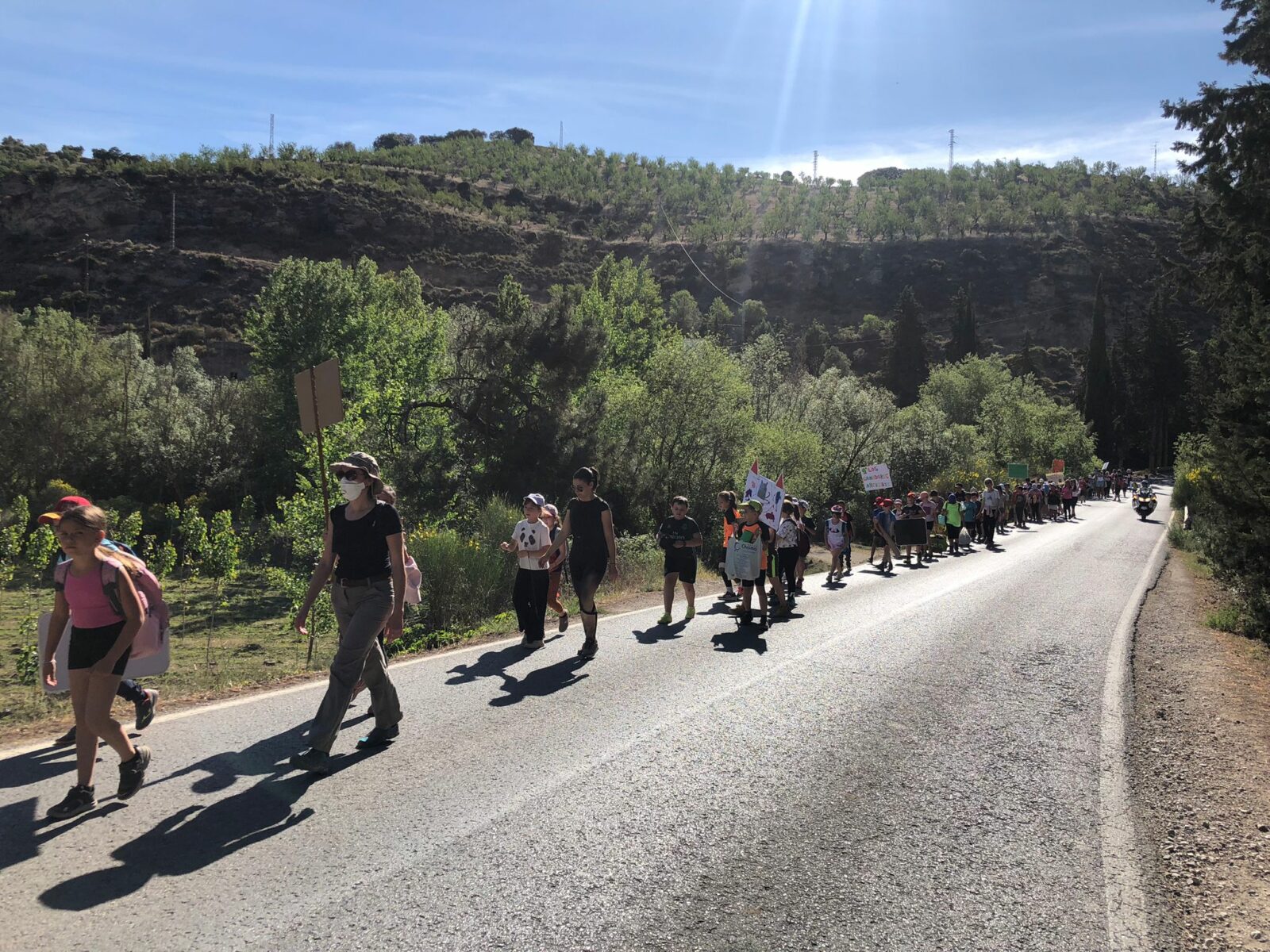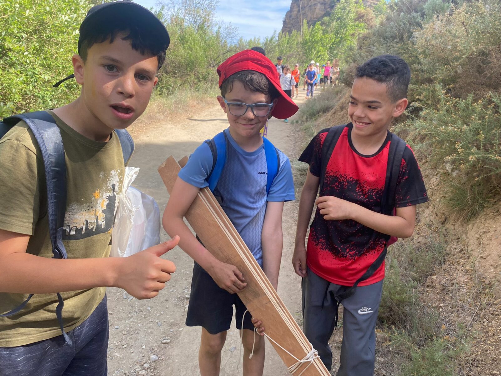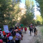 La jornada comenzó con la pequeña ruta hasta llegar a la zona, donde cargados con comida, pancartas y material para crear las cabañas disfrutamos del paisaje y de leyendas de Alhama.