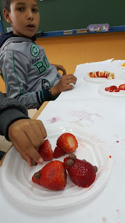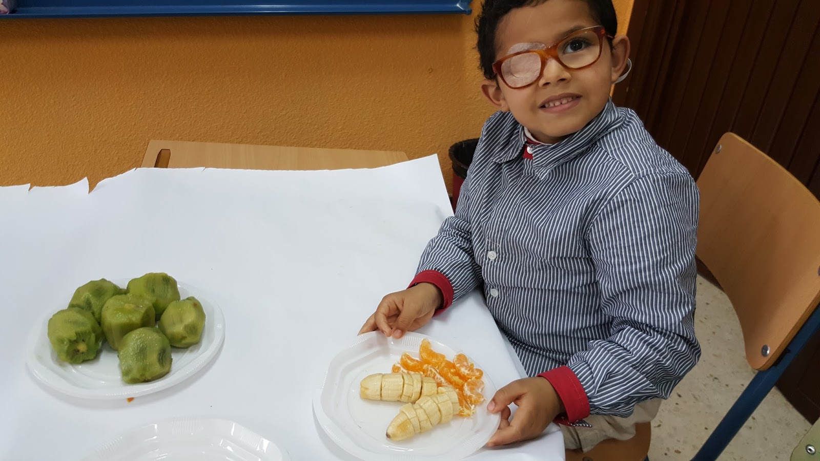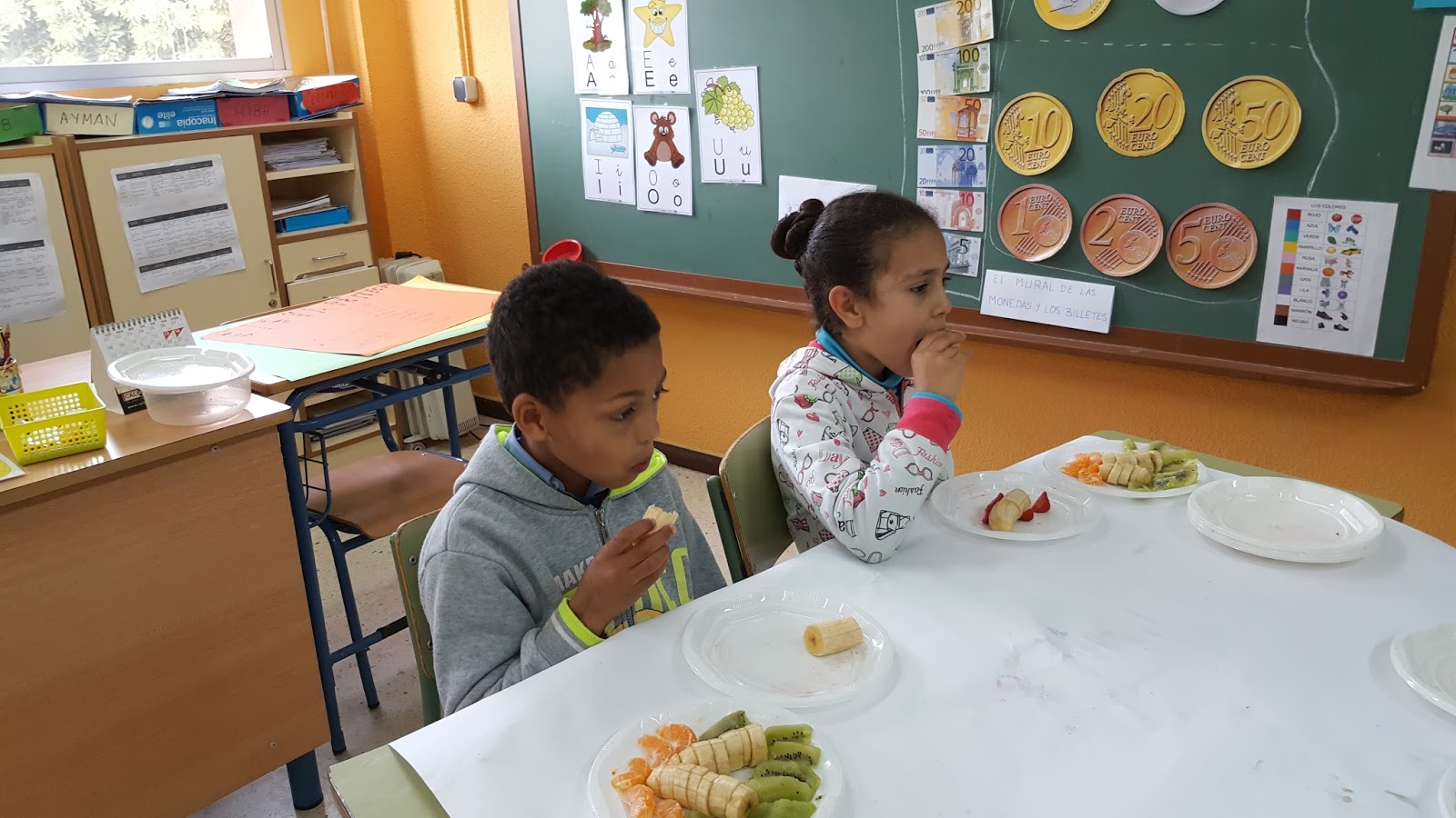 Comenzamos la actividad preparando la clase: los alumnos/as colocaron las mesas en grupo, pusieron los manteles, prepararon los platos, cubiertos y servilletas y seleccionaron la fruta necesaria. Después de pelar nuestras frutas, fueron recogiendo las cáscaras en una bolsa. Después, con una imagen de modelo empezaron a crear sus figuras. Se ayudaron unos/unas a otros/otras para conseguir que todos/as tuvieran éxito en su actividad. Después llegó lo mejor….¡¡¡¡desayunamos nuestras sanas figuritas!!!!. ¡¡¡¡Se lo pasaron genial!!!!