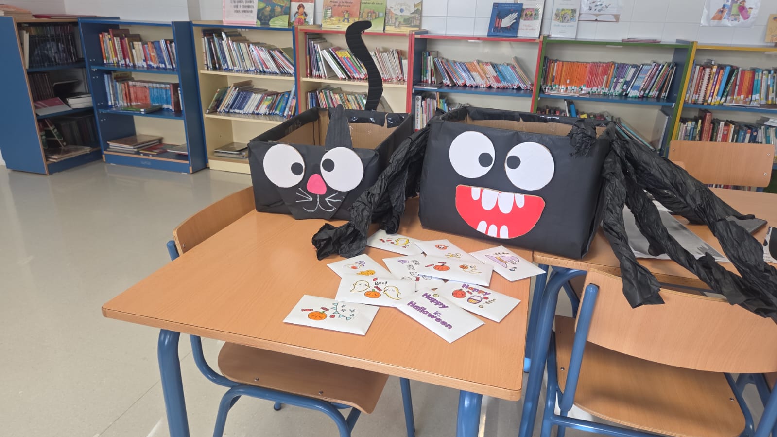 Inmersos en los preparativos de la celebración de Halloween en nuestro Centro, queremos compartir con vosotr@s imágenes sobre el fantástico trabajo que se está realizando de decoración tanto en la Biblioteca del Centro, como en diferentes dependencias (aulas, pasillos…). Asimismo, son variadas las actividades que se están organizando para que nuestr@s pequeñ@s vivan un Halloween «de miedo». Aquí os dejamos muestras tambie´n de nuestro desayuno terrorífico.