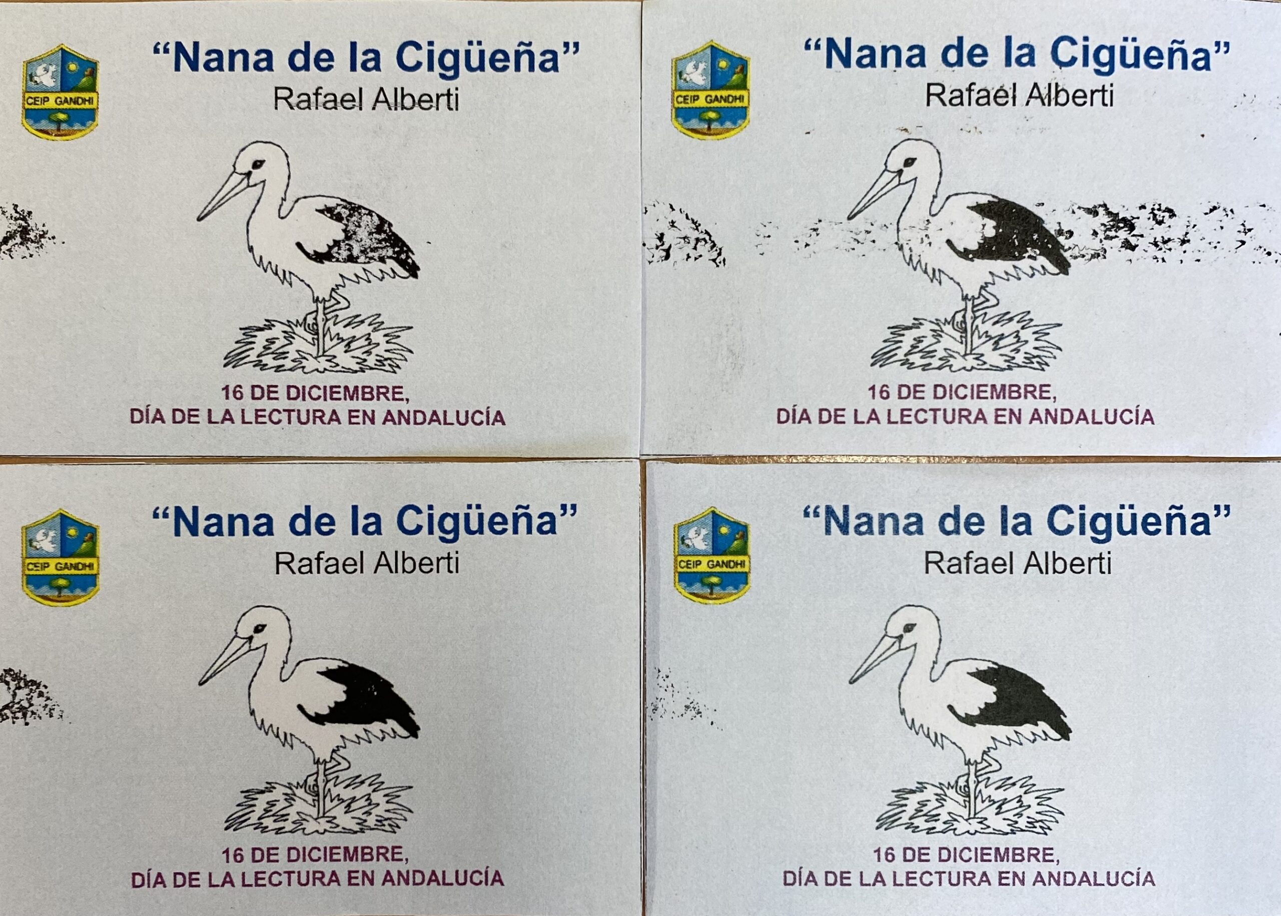 Hoy hemos celebrado «El día de la Lectura», recitando a Rafael Alberti: «Nana de la cigüeña», » A volar» y «Se equivocó la paloma» han sonado en las aulas y en la Biblioteca. Nuestros estupendos lectores han recibido marcapáginas y pegatinas para que sigan leyendo cada día más.