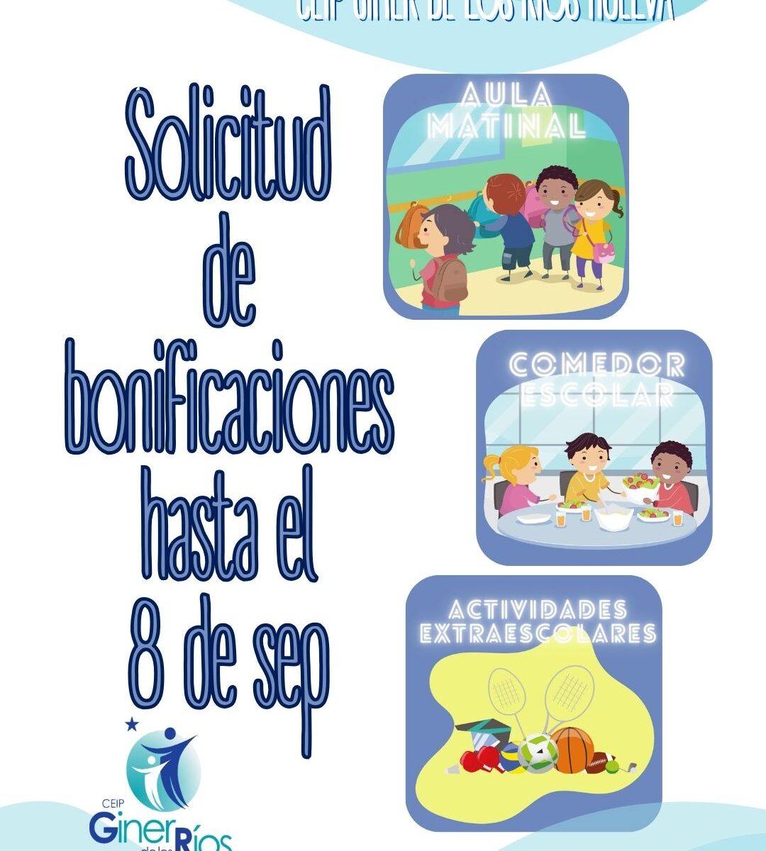 El plazo para solicitar las bonificaciones es del 1 al 8 de septiembre y se tramitará online a través de la Secretaría Virtual en el siguiente enlace:
