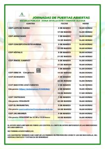 (PDF con las fechas y horarios de las Jornadas de Puertas Abiertas de los centros públicos de Sevilla Este-Parque Alcosa)