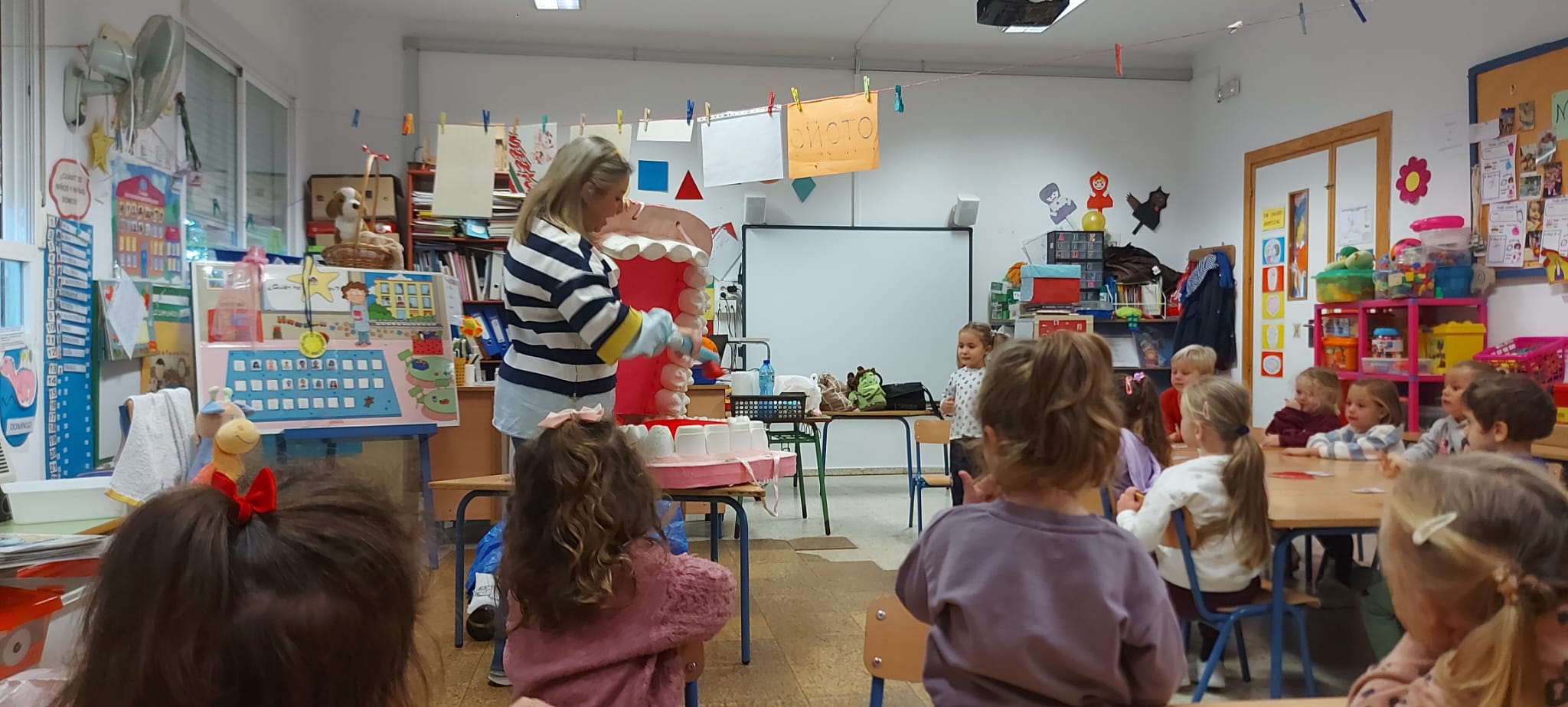 Este año en concreto se ha trabajado a nivel de aula hasta el segundo ciclo, la historia de Arturo y Clementina, un maravilloso cuento que permite recapacitar y reflexionar sobre las relaciones y el respeto entre sus miembros, especialmente cuando no manifiestan actitudes de escucha y respeto. Los más pequeños del centro, han realizado una manualidad de los personajes del cuento.