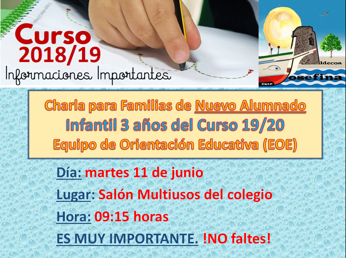 Reunión con Nuevas Familias de Infantil 3 años – Curso 19/20