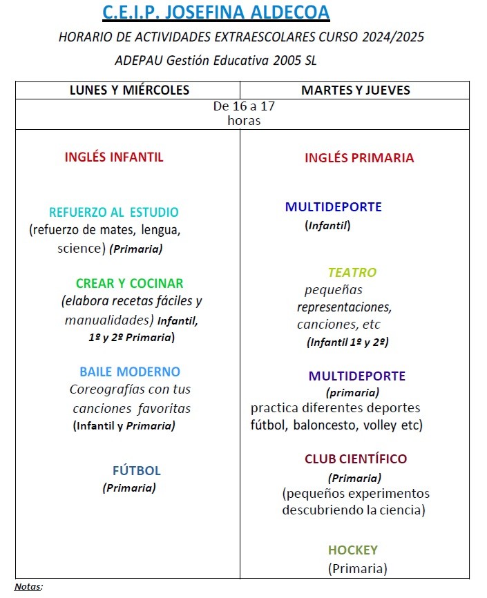 - Para cualquier información, consulta, aclaración, etc…sobre las actividades extraescolares contactar con la empresa en el número de teléfono 616138899