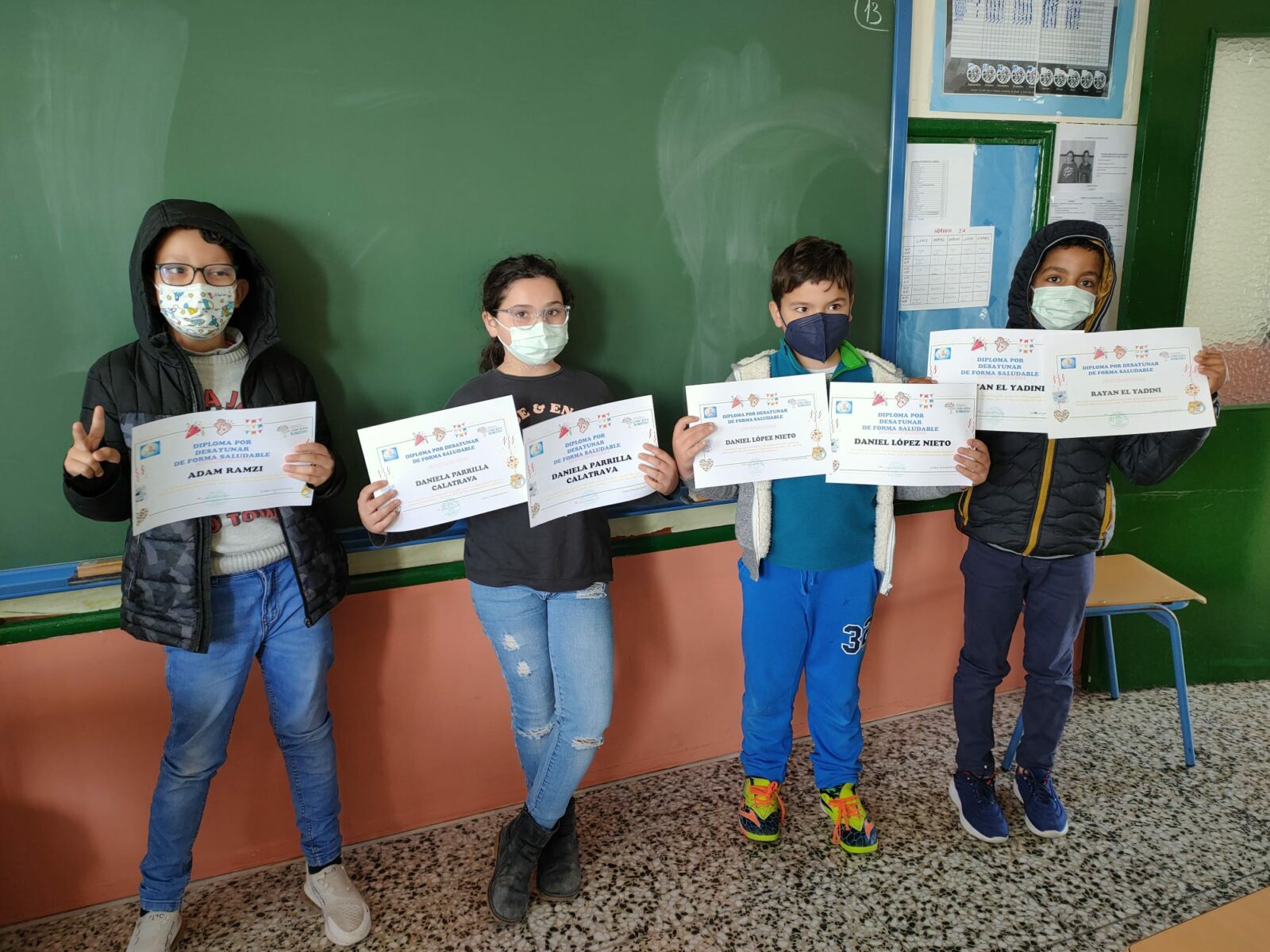 Para que nuestro alumnado crezca en salud usamos la estrategia del ‘Desayuno Saludable’. Cada día ganan un punto quienes desayunan de forma sana (bocadillos, fruta, lácteos, verdura, frutos secos, agua…), y al final de cada mes se hace un recuento para conocer los ganadores de cada grupo a quienes se hace entrega de un diploma por su compromiso y el de sus familias con la buena alimentación.