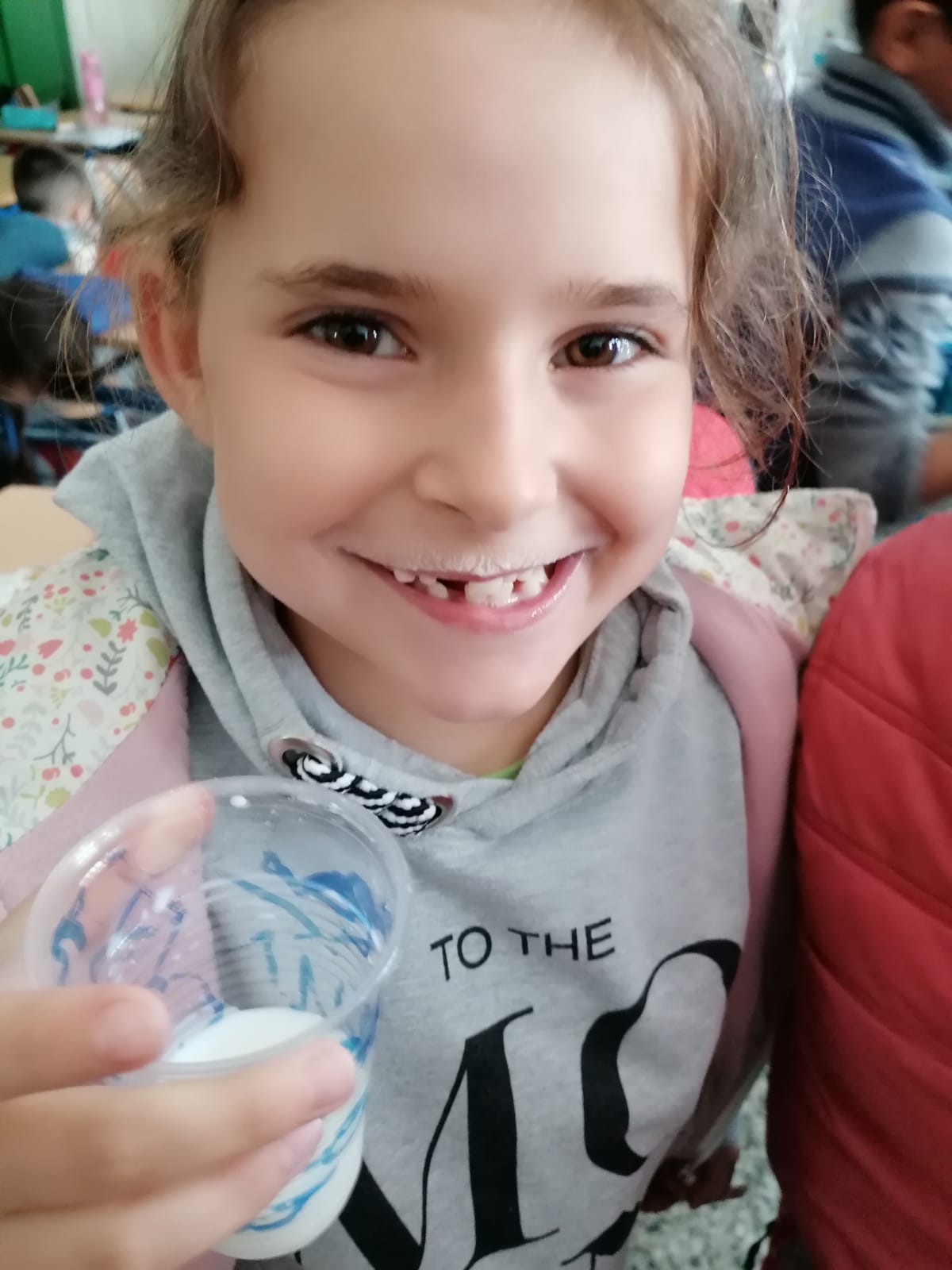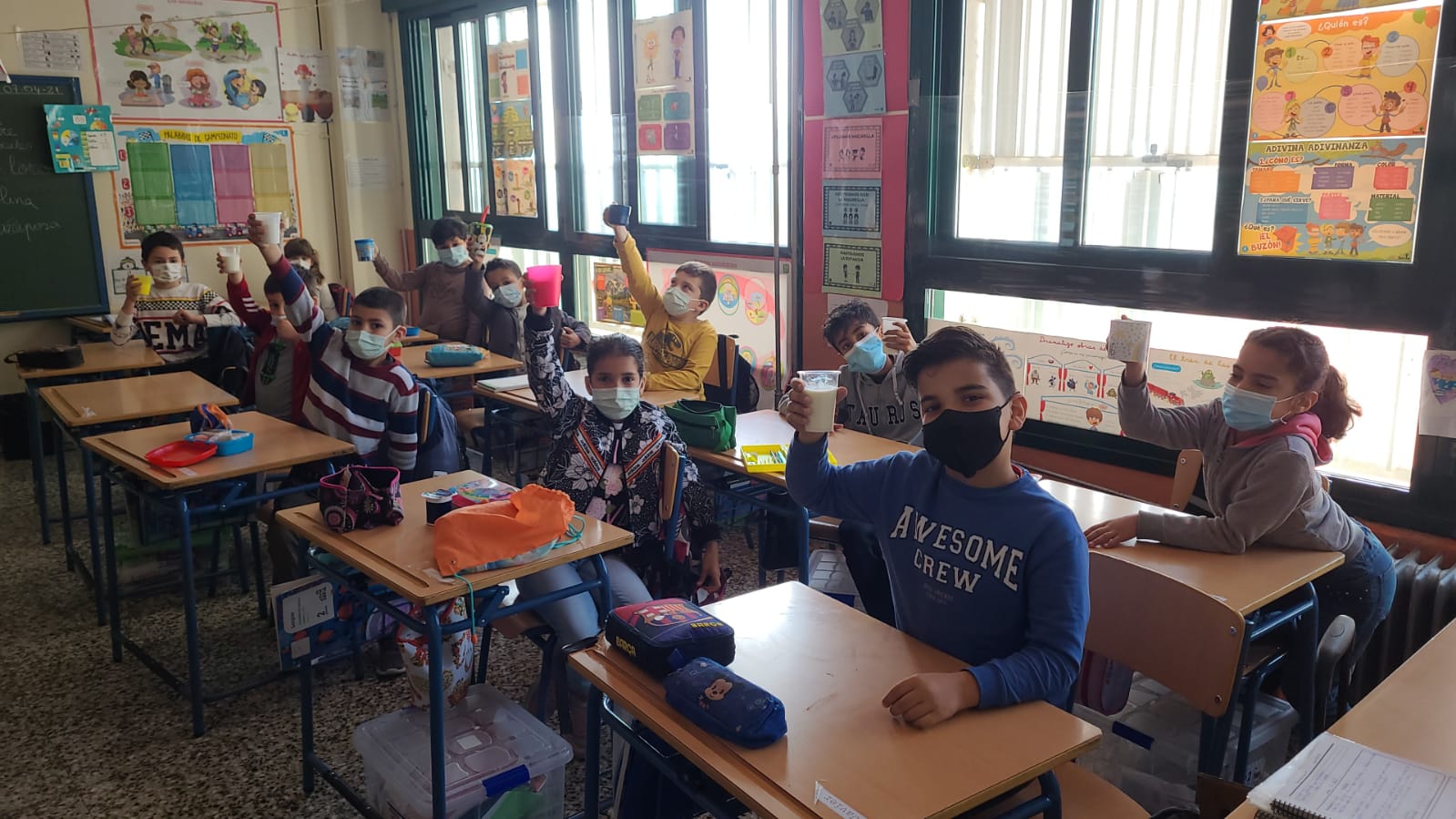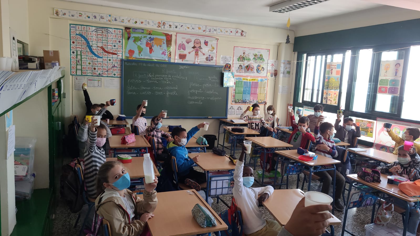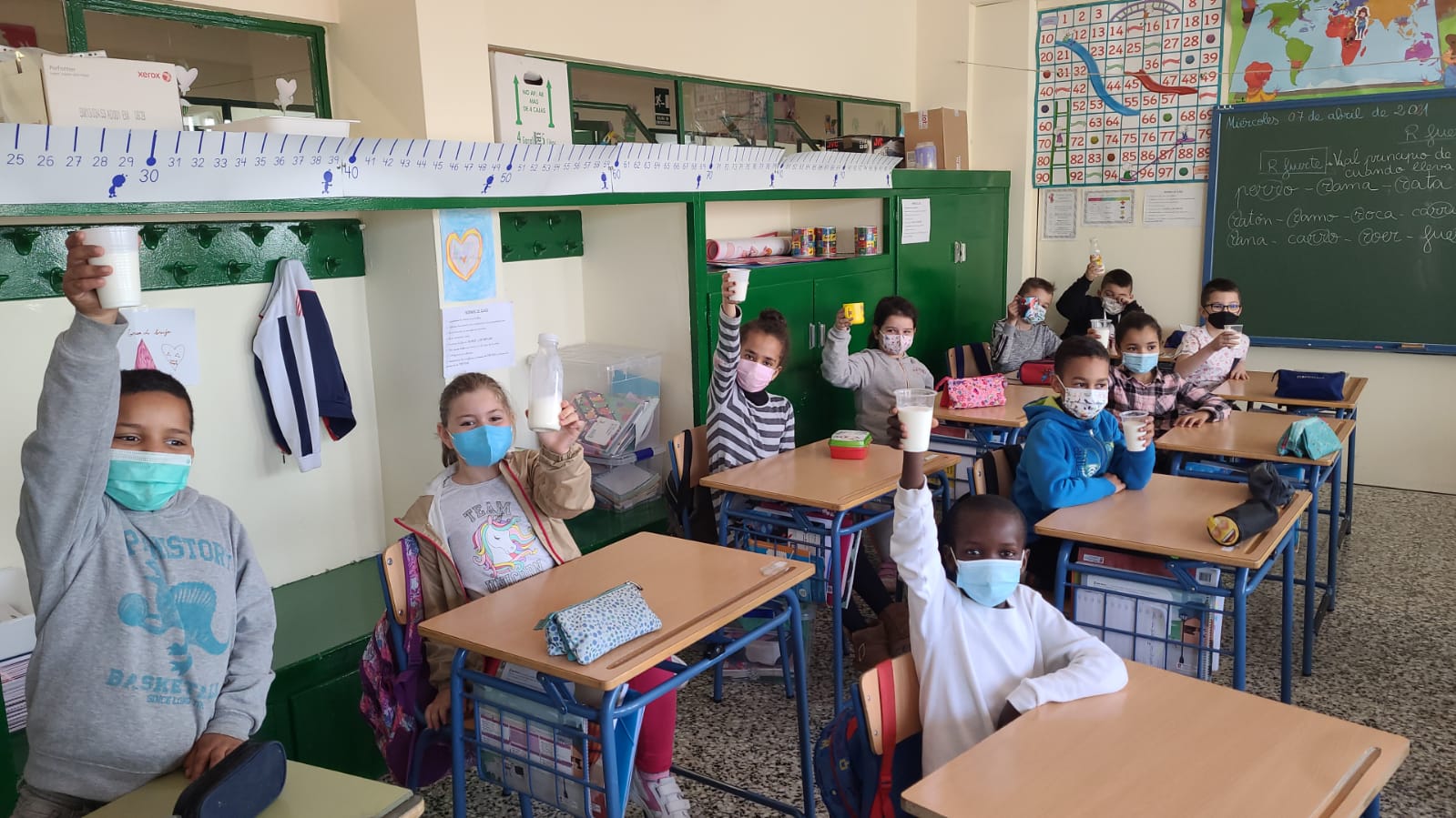 Para la ingesta de la leche se pidió al alumnado que aportara un recipiente reutilizable, ¡gracias a todos los que lo trajisteis!
