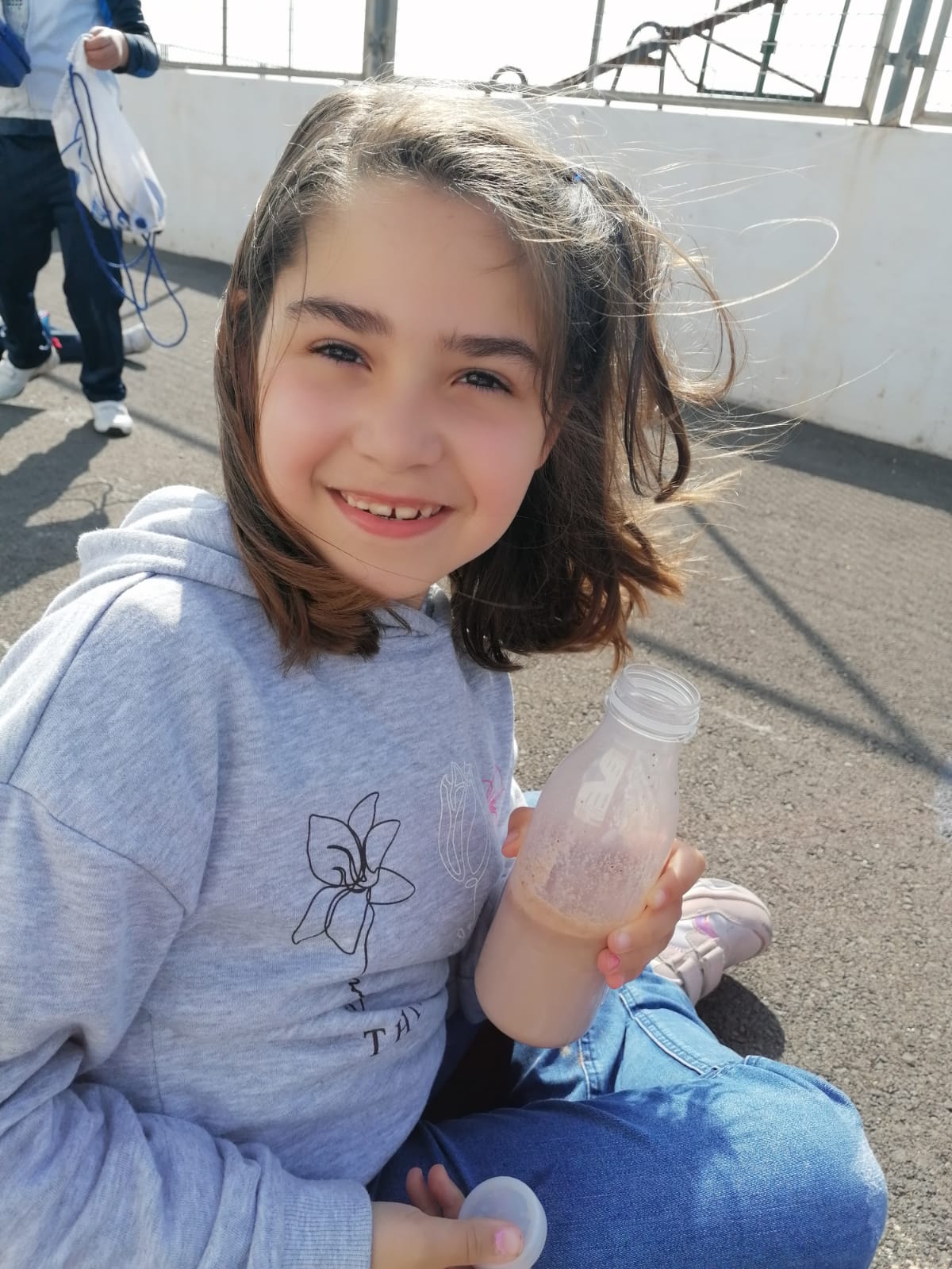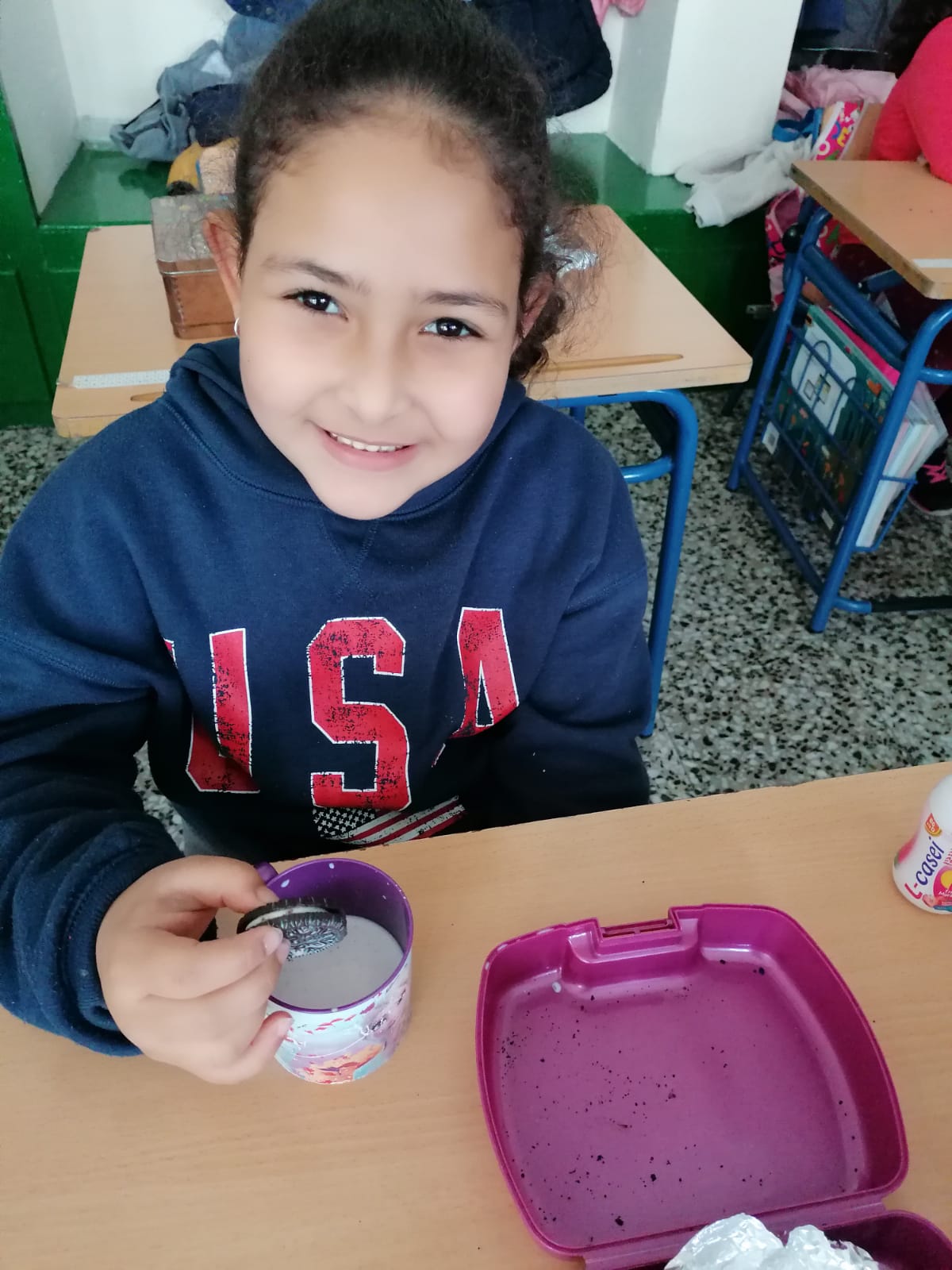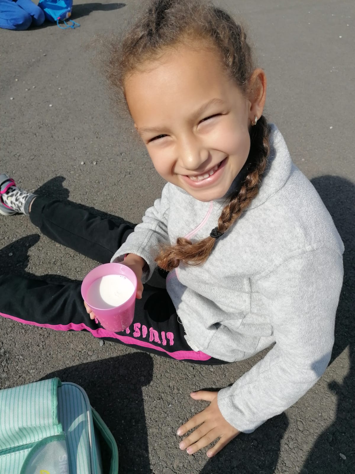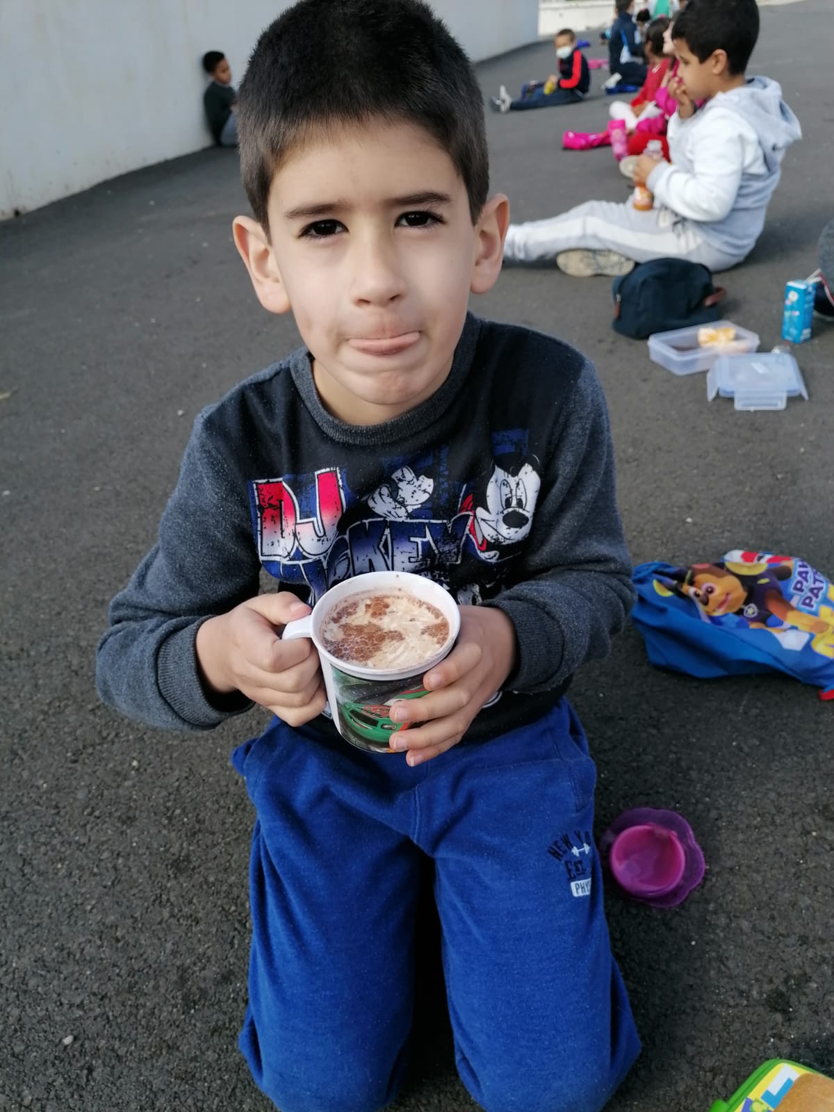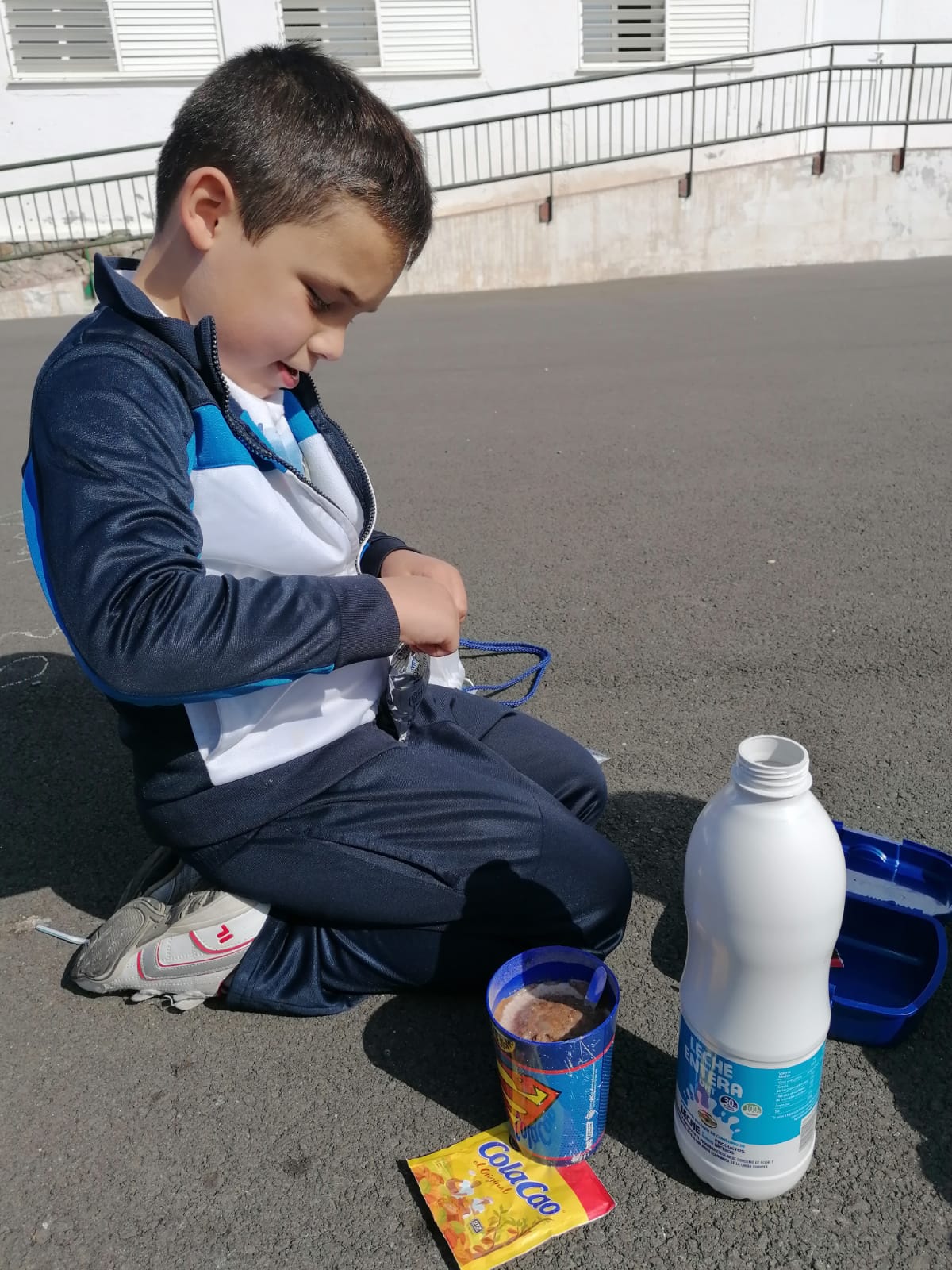 Para la ingesta de la leche se pidió al alumnado que aportara un recipiente reutilizable, ¡gracias a todos los que lo trajisteis!