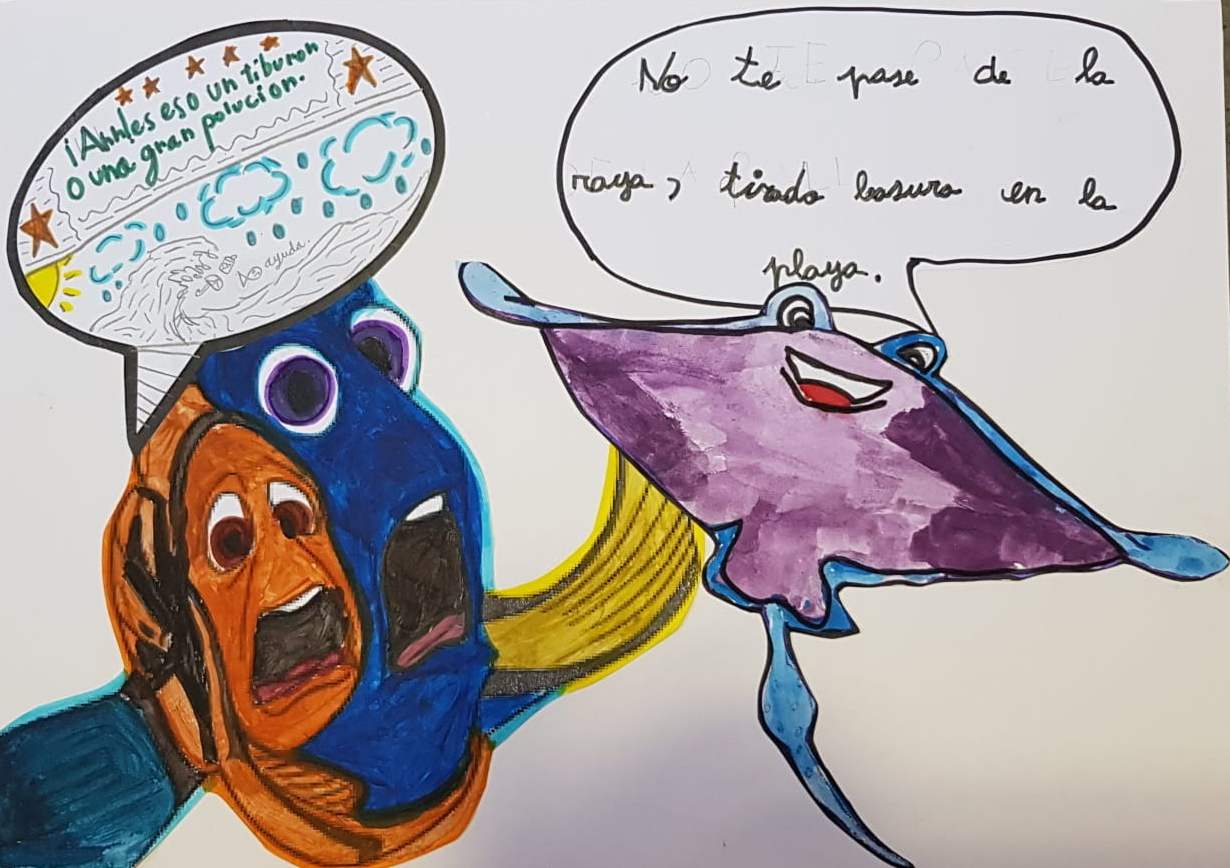 Segundo curso ha elaborado un libro gigante con personajes de cuentos dando mensajes para cuidar las playas y mares.