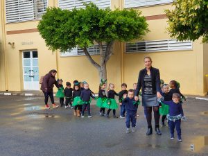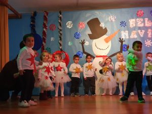 5 años A «Uno más», 5 años B «En estas navidades quiero bailar» y 5 años C «Corre, salta, juega»