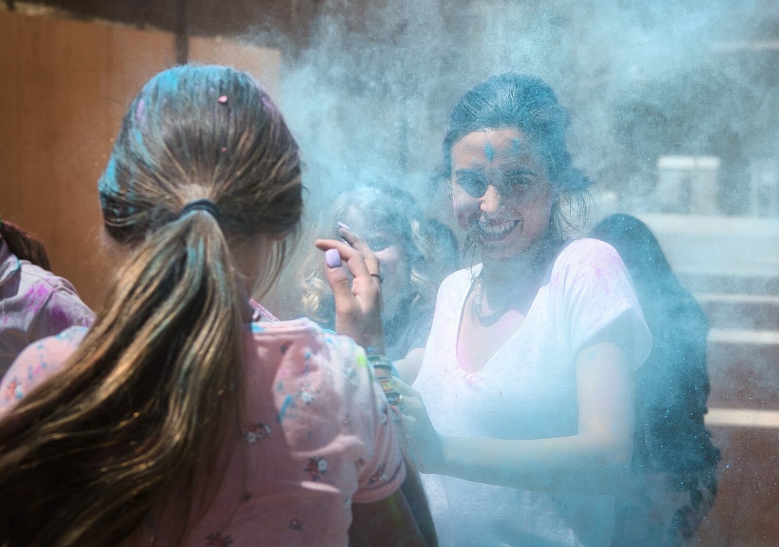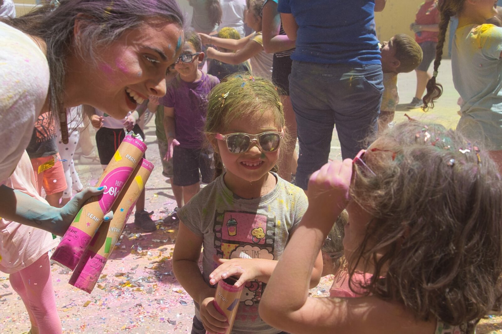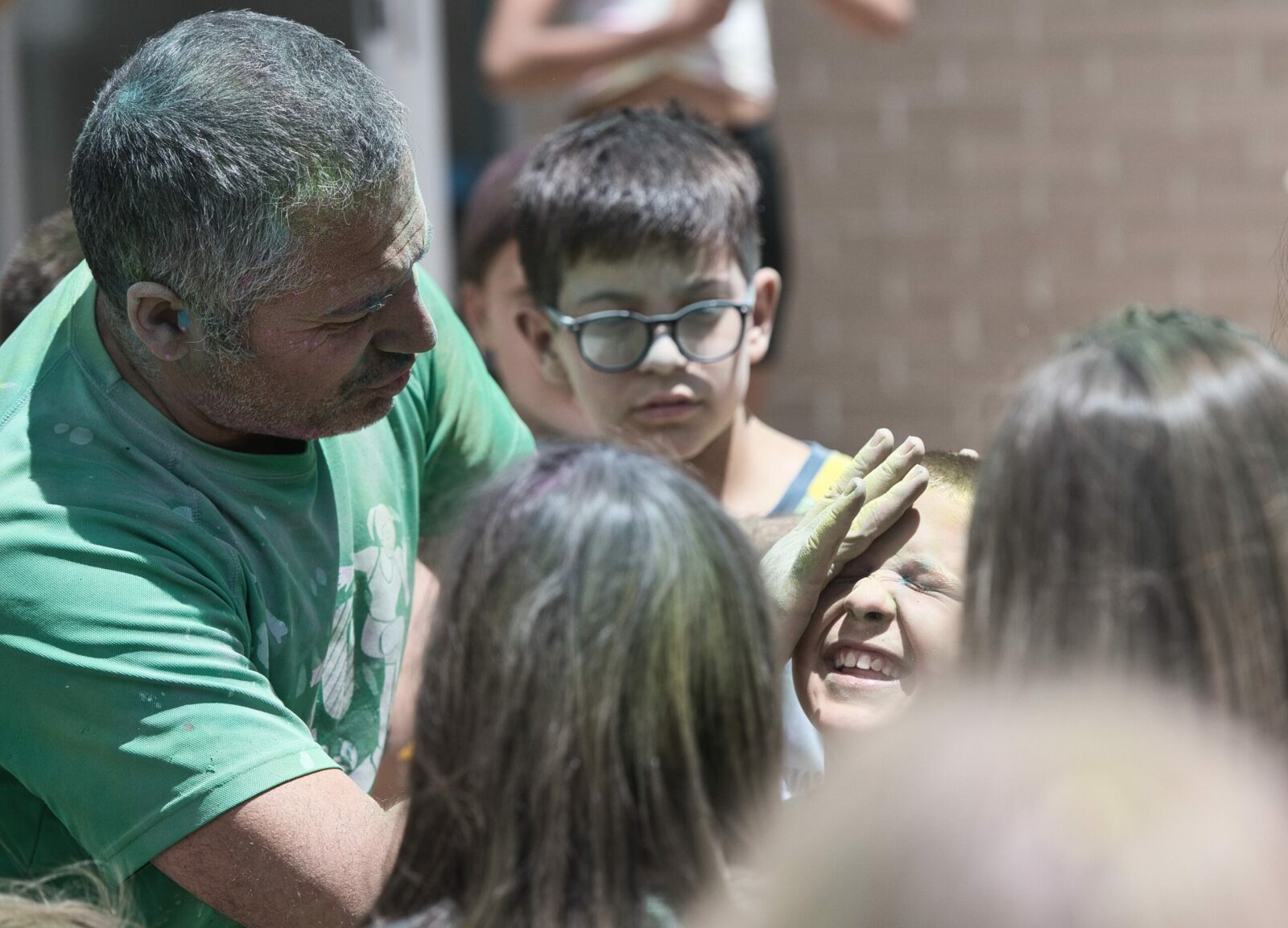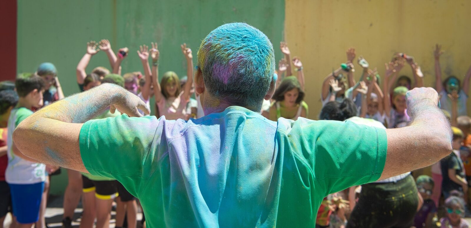 Last Thursday 23rd in our school we celebrated «Holi Party« with Raul as the organizer of the proposal. The backbone of the activity was to tell the story of the tale: «The colorful monster».