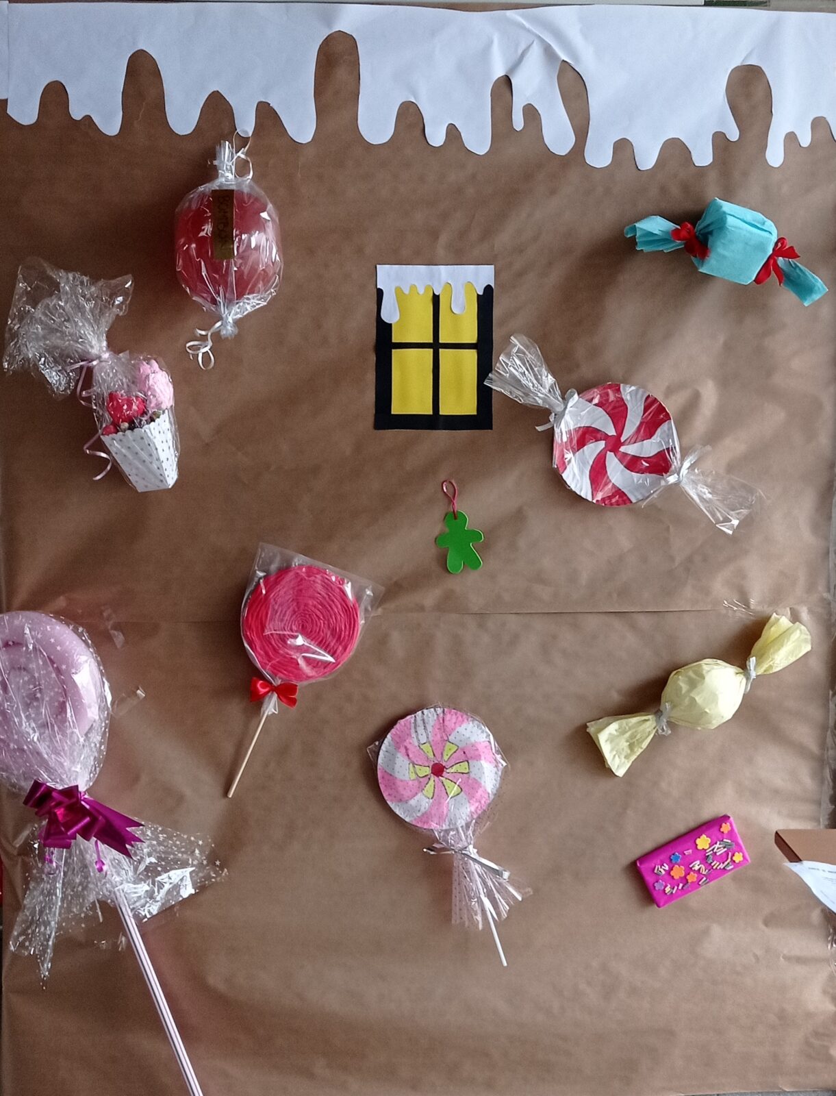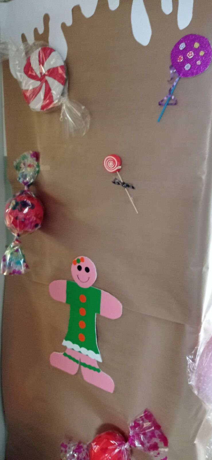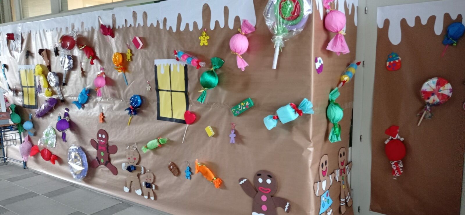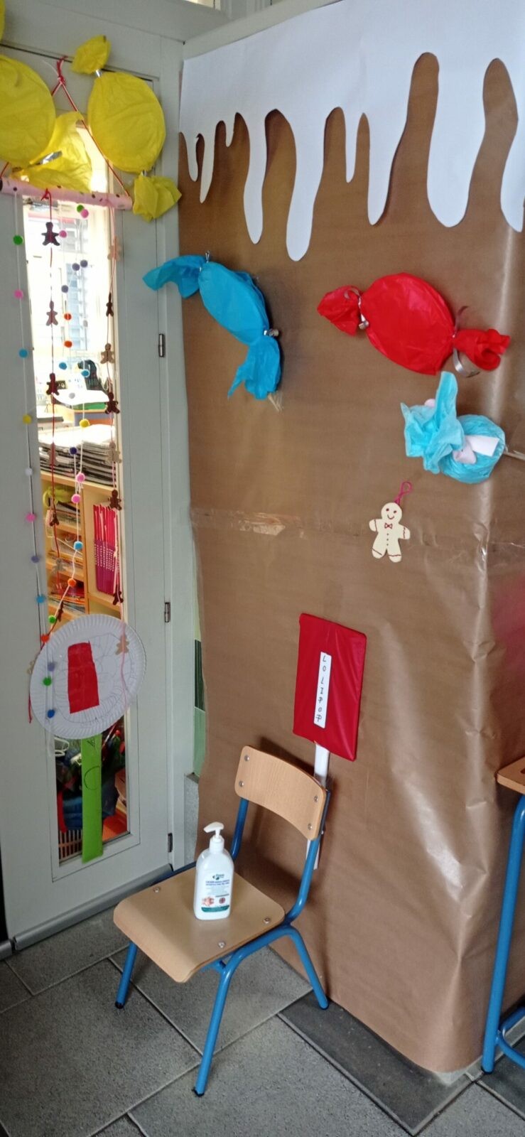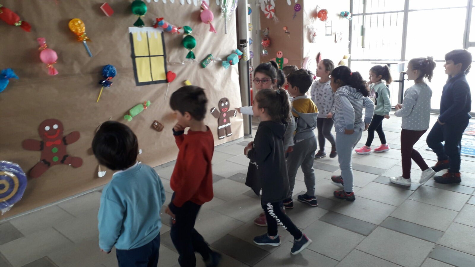 Hemos contado en clase el cuento de “La casita de chocolate”, de los Hermanos Grimm, y teniendo este cuento como referencia hemos decorado la entrada de nuestras aulas con gran cantidad de dulces y caramelos. Gracias a la colaboración de nuestras familias, entrar en nuestras clases es como si nos adentrásemos verdaderamente en el cuento de Hansel y Gretel.