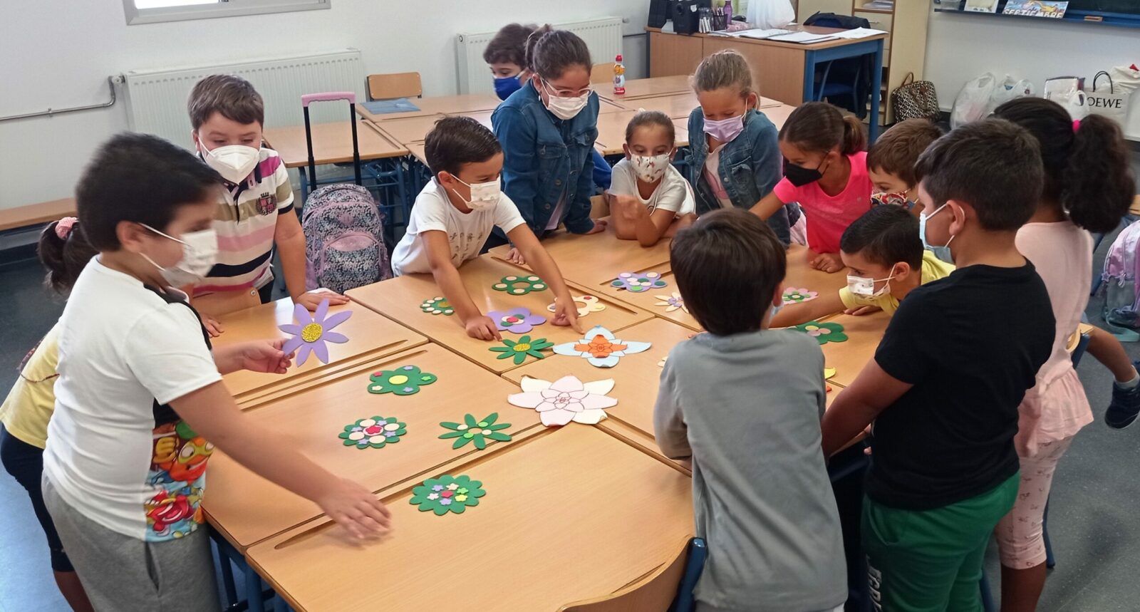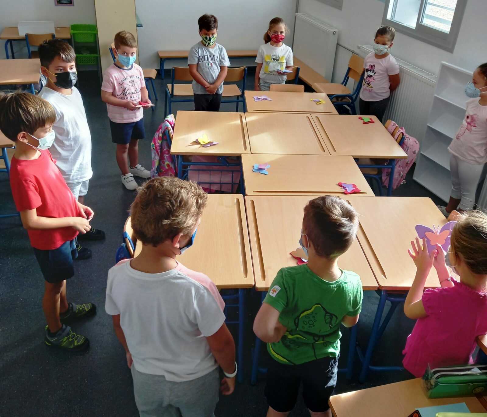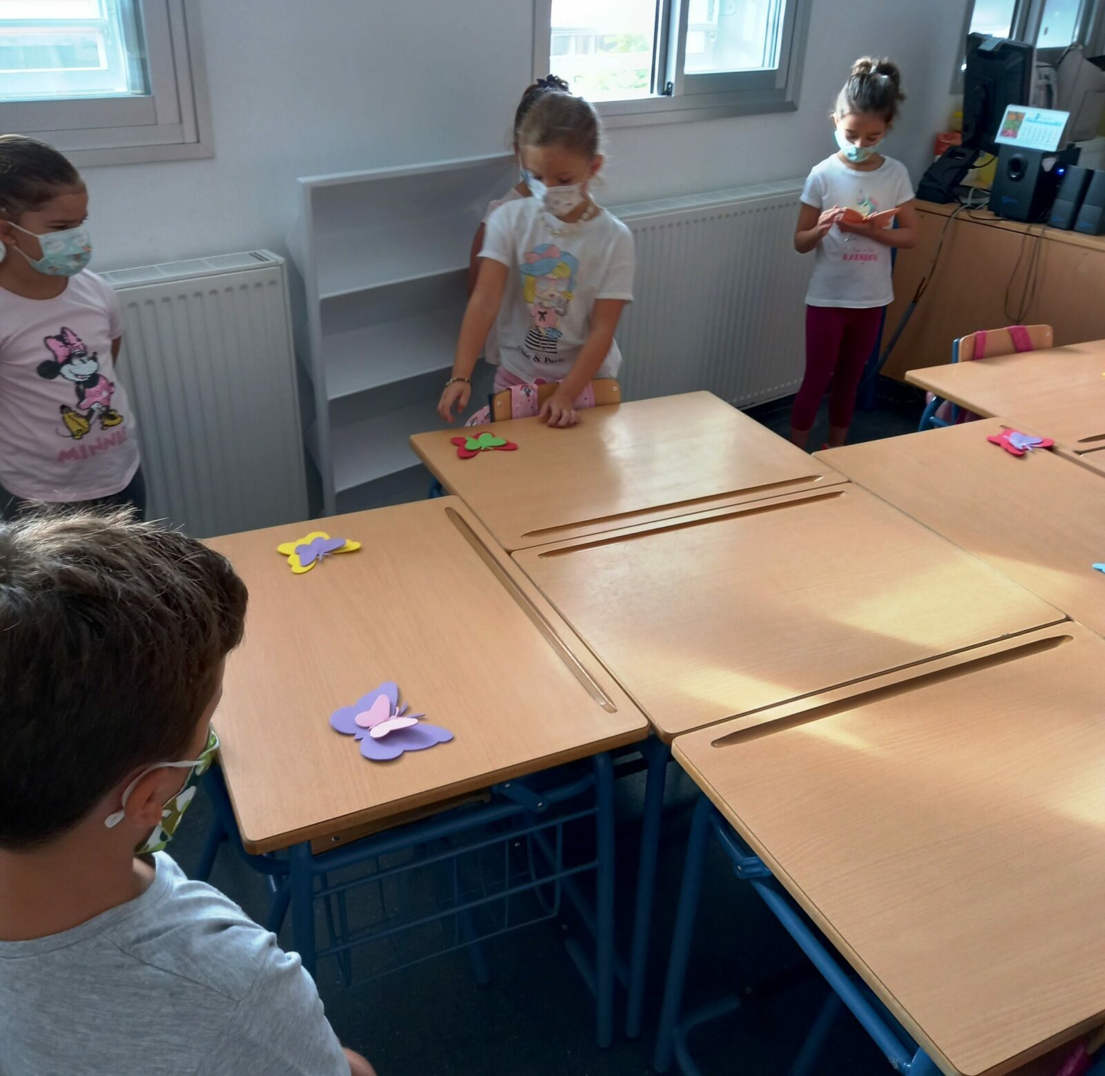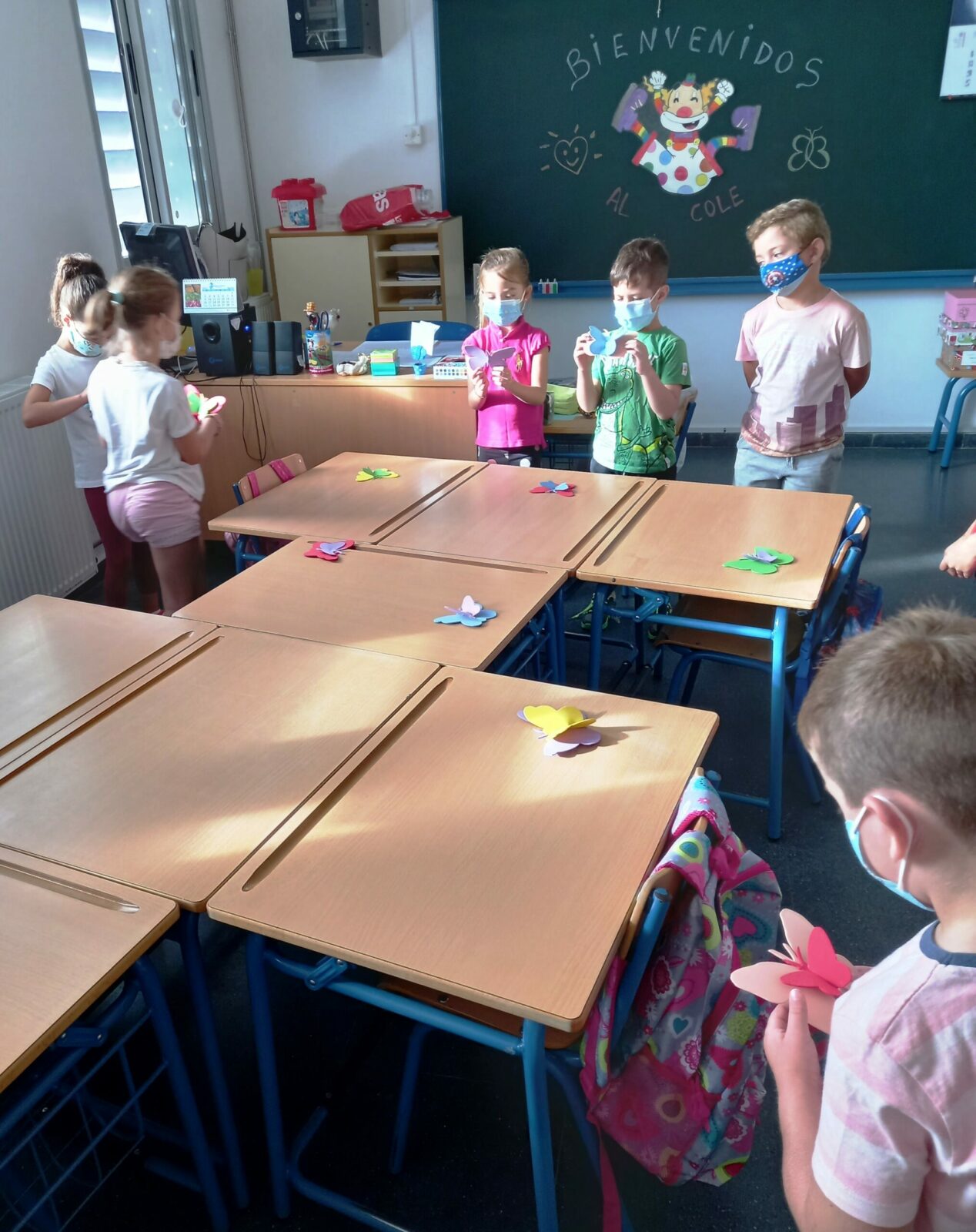 Durante los primeros días del curso los dos grupos de 1º nos pusimos un símbolo de identificación que nos gustaba: las mariposas para la clase de 1ºA y las flores para la clase de 1ºB, así que somos la “clase de las mariposas” y la “clase de las flores”