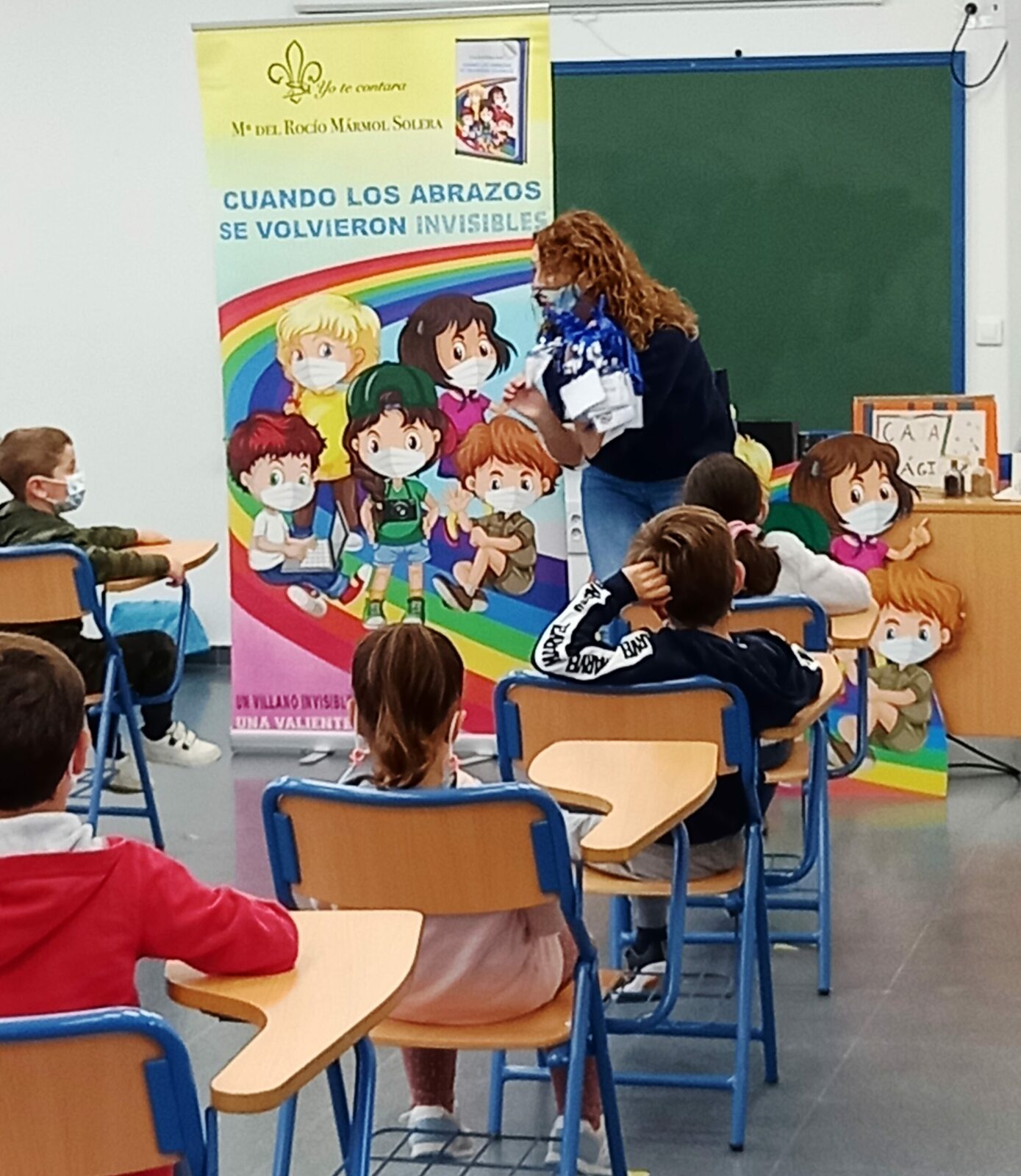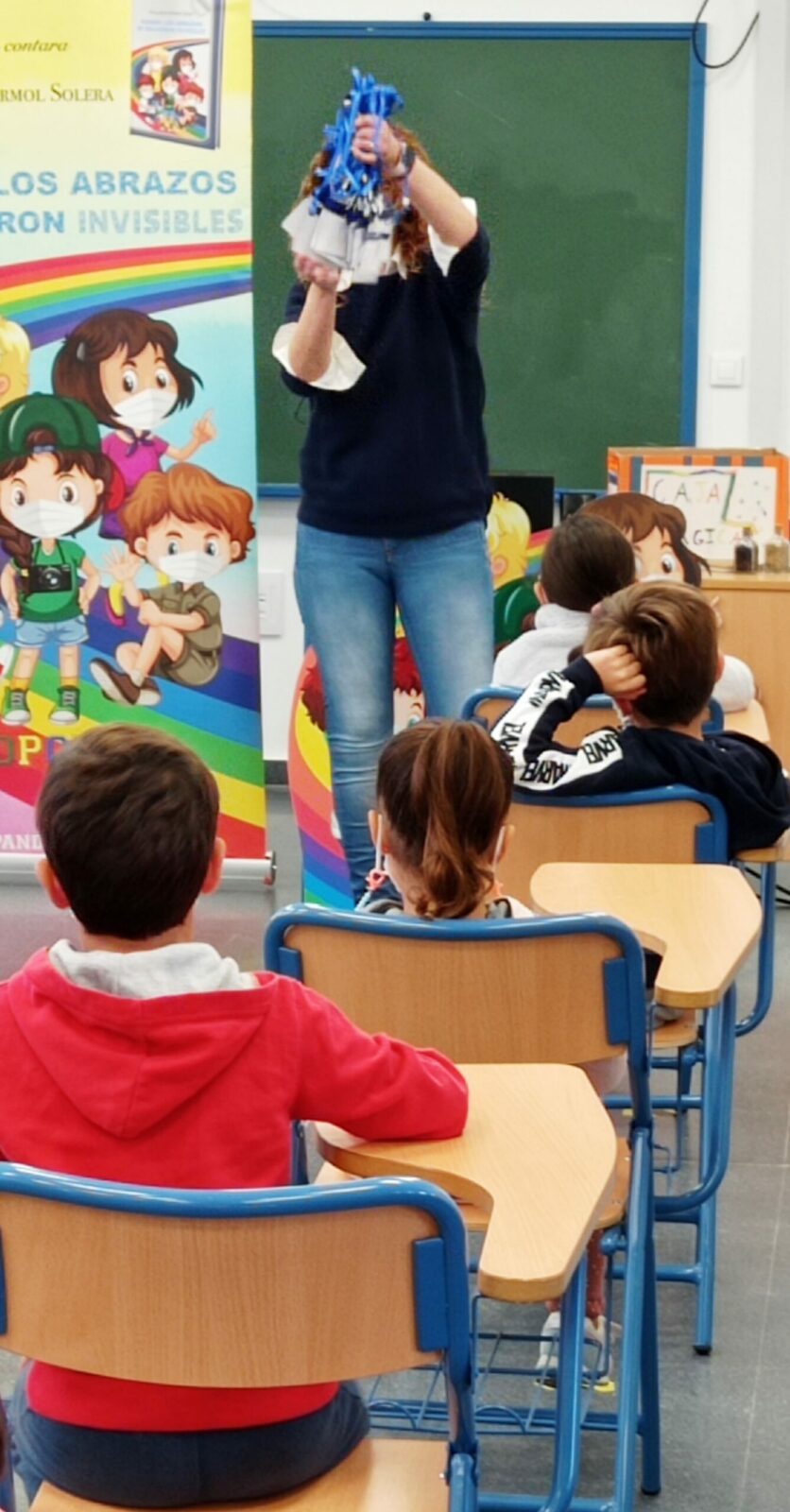 Un villano invisible nos robó los abrazos y los besos a los que estábamos acostumbrados, así que como reconocimiento a la infancia ante el COVID-19 un libro, a medias entre la fantasía y la realidad: “Cuando los abrazos se volvieron invisibles”. Vino a nuestro cole la escritora de este libro y nos hizo pasar un buen ratito, descubriendo de puntillas algunos secretos de la historia del libro. Hizo miembros del club de la pandilla OPCF al alumnado de 1ºA y 1ºB. Recibieron incluso el carnet de socios/as y se pusieron contentísimos/as.