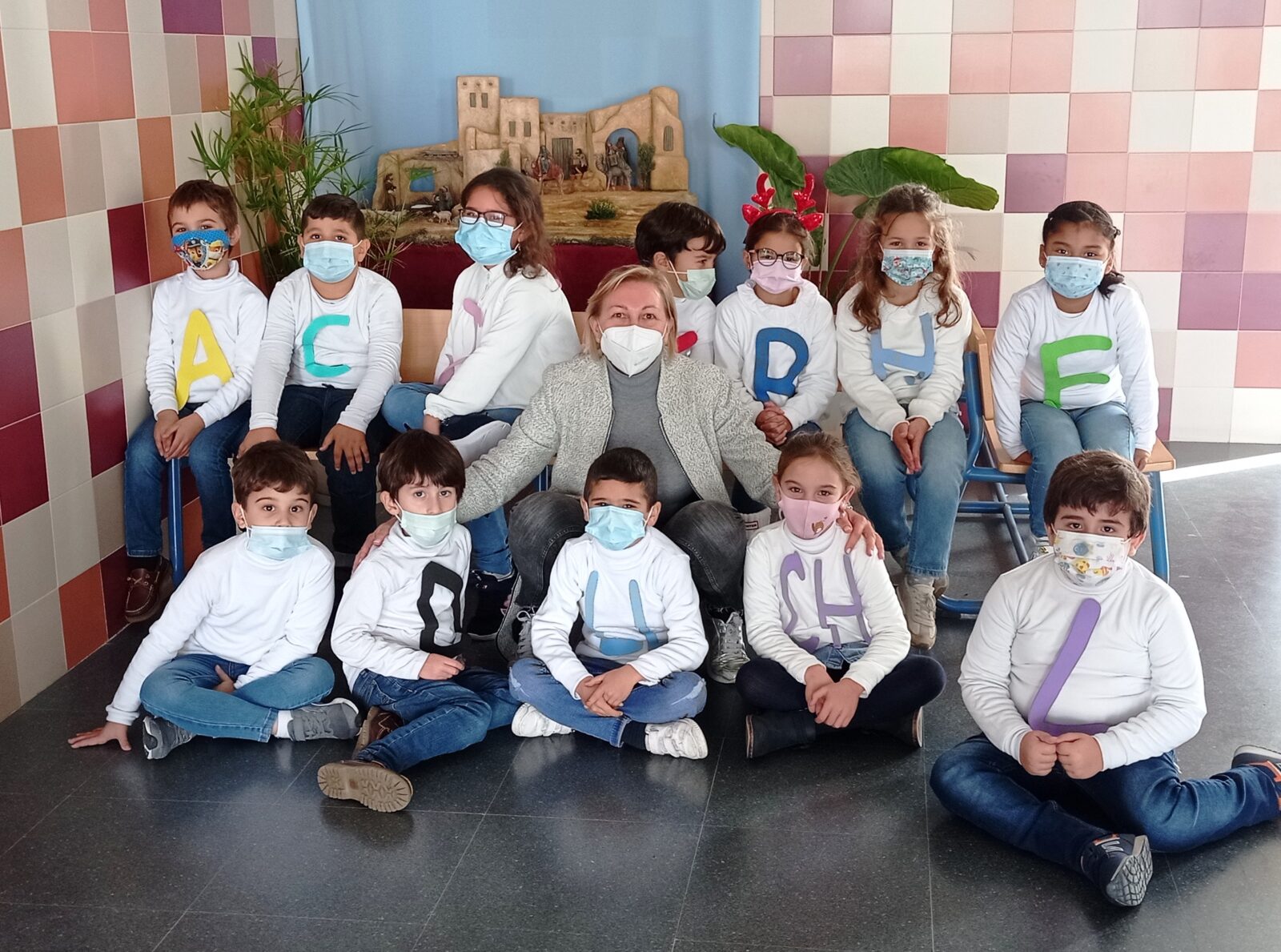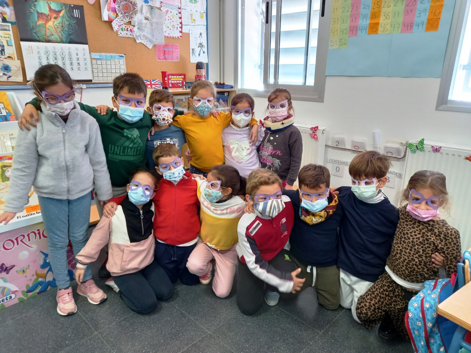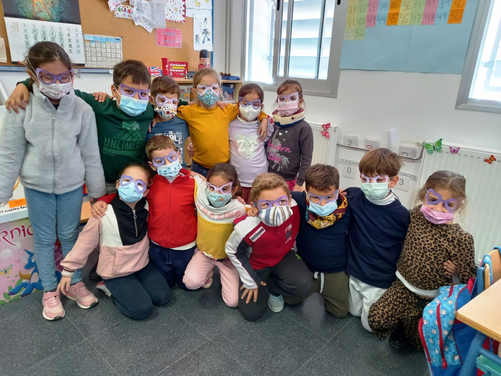 El alumnado del primer ciclo participó en el gran mural de las gafas violetas.