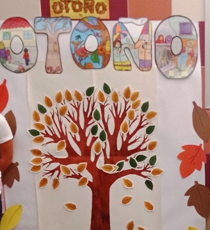 Hicimos nuestra decoración del otoño en el pasillo de E. Primaria, cerca de las aulas de 1º.
