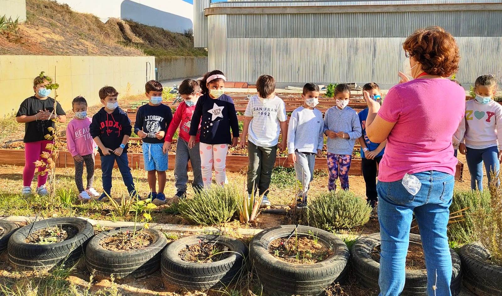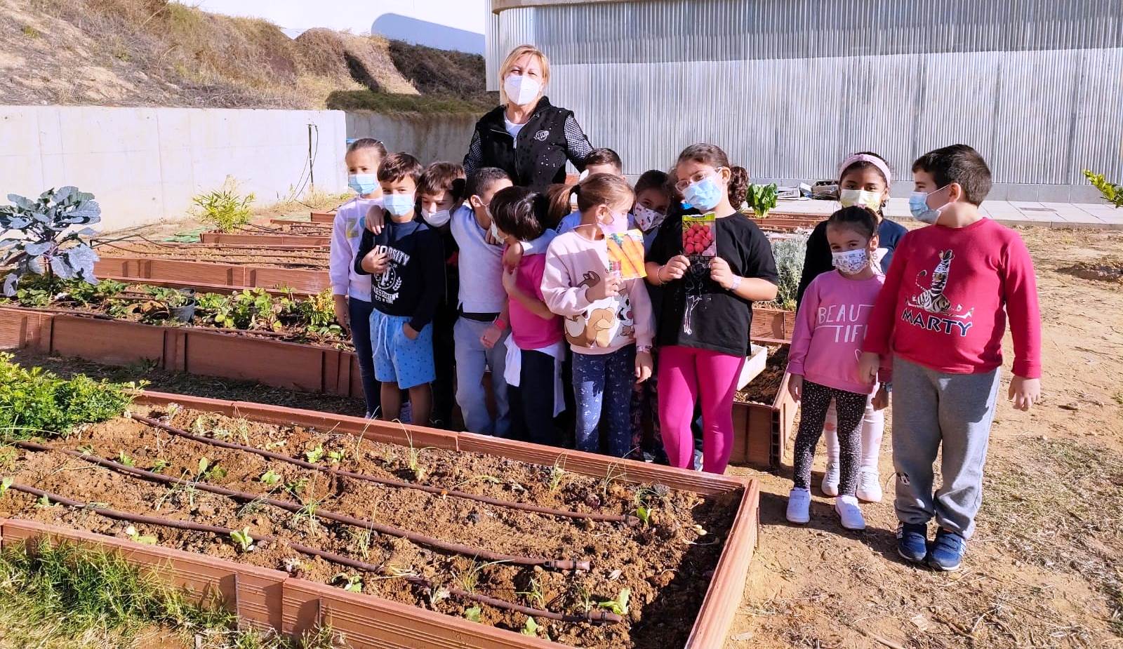 Nos echamos algunas fotos juntos/as para que cuando volvamos a trabajar otro día en el huerto podamos ver la diferencia del inicio y el final; veremos entonces crecida la cosecha y recogeremos las hortalizas y frutos que haya.