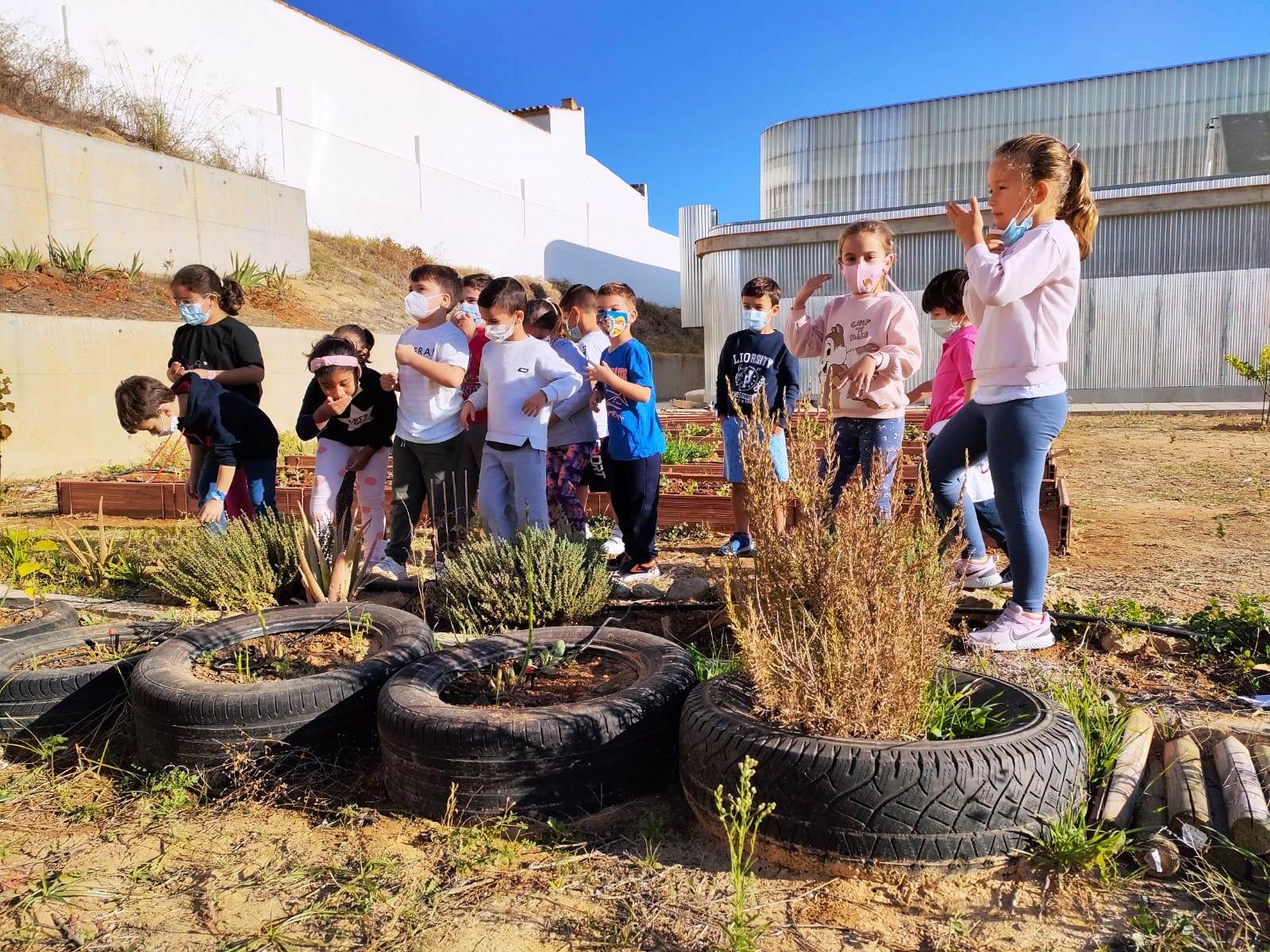 En la primera ocasión hicimos varias actividades: olimos algunas plantas aromáticas para reconocerlas no sólo por la forma de sus hojas, tallo, flores… sino también por su rico olor. Aprendieron que algunas de estas plantas se usan para aderezar las comidas, para perfumería y cosmética…