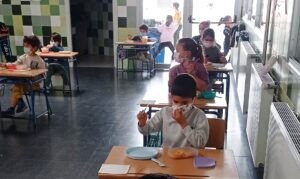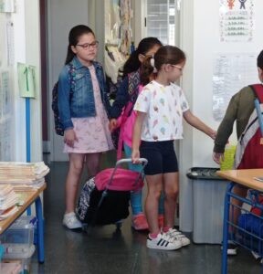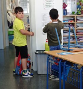 Desde el tercer trimestre el alumnado de E. Primaria ya puede desayunar en el patio, como hace unos años, algunos antes de que existiera el COVID.