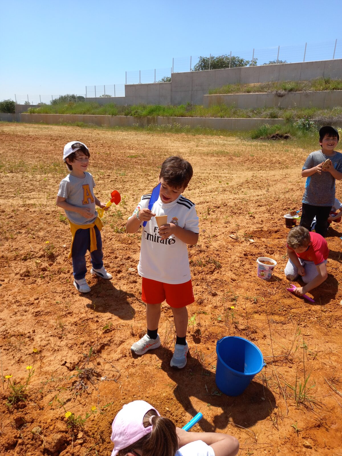 Seguidamente, cambiamos la clase de plástica por los juegos con tierra, que también es una forma muy plástica de aprender.