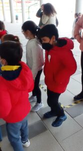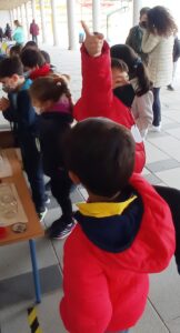 En primer lugar, aprovechamos la clase de ciencias naturales de un viernes para bajar al huerto y entre las dos tutoras de 1ºexplicamos a nuestro alumnado la estación meteorológica que allí tenemos, relacionándolo con los contenidos que habíamos trabajado precisamente en el tema de ciencias naturales.