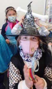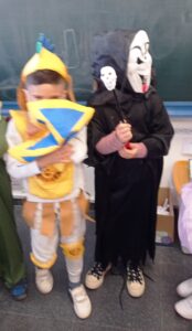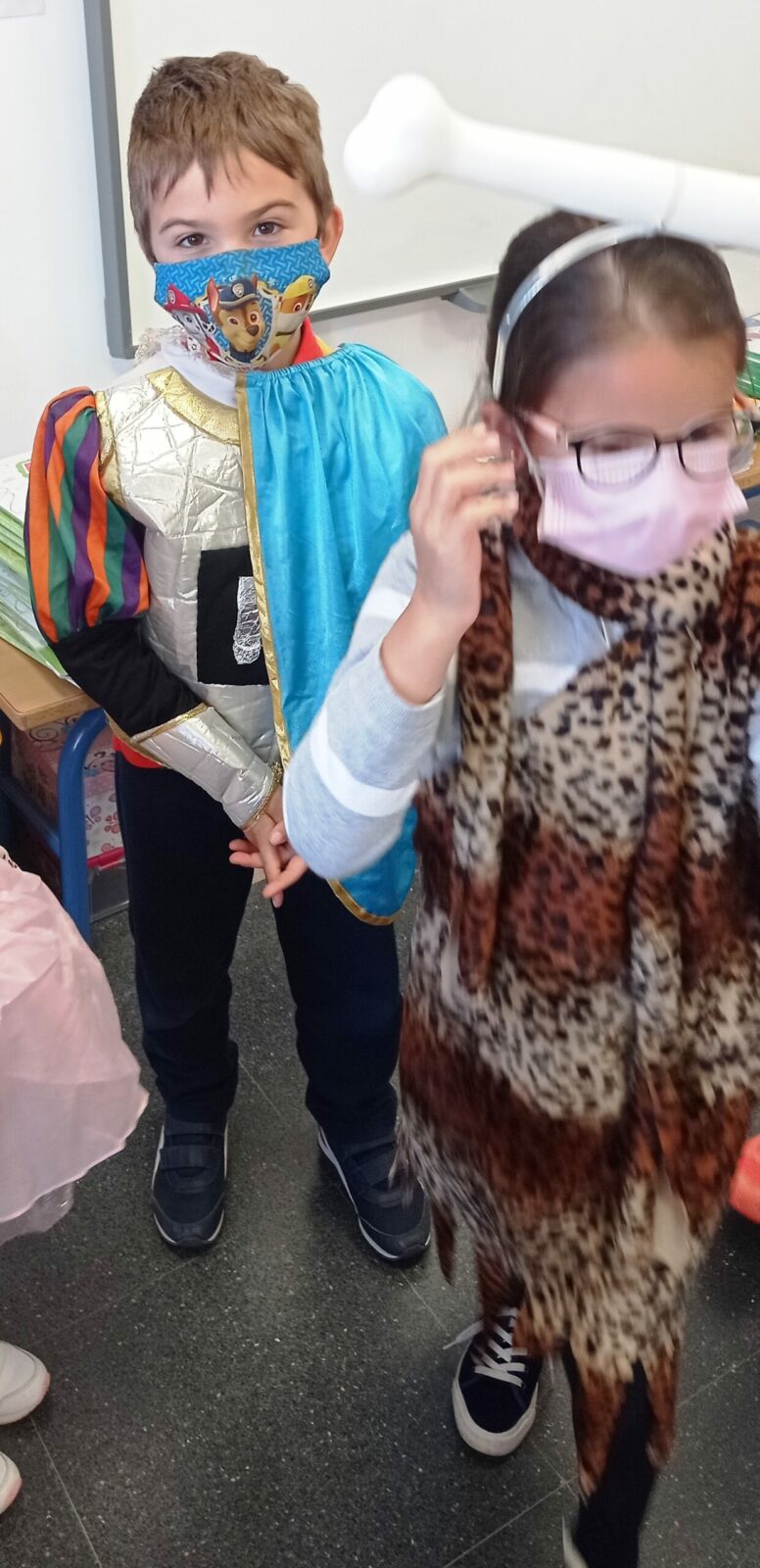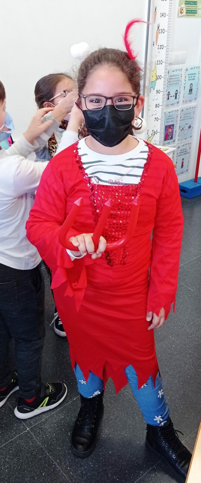 Aquel día el trabajo fue a muy buen ritmo. Faltaron algunos/as niños/as y nos dio tiempo hacer muchas tareas, así que para que hicieran un descanso saludable se me ocurrió que les encantaría disfrazarse de animales, de príncipes y princesas, de músicos, de trogloditas, de diablas, de brujas… de lo que cada uno/a quiso.