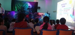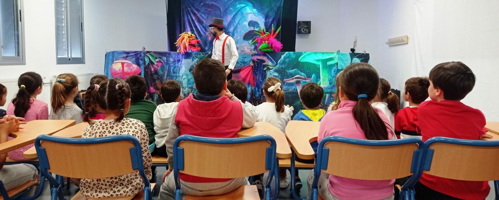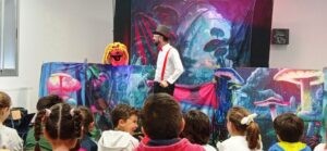 Las fotos no captan realmente las caras de sorpresa, de alegría, de atención, de diversión, de interés, de emoción… del alumnado de 1º al participar del cuentacuentos que la empresa “Fuego Legend” -con la colaboración total del área de igualdad del ayuntamiento de la localidad- nos ofreció esa mañana.
