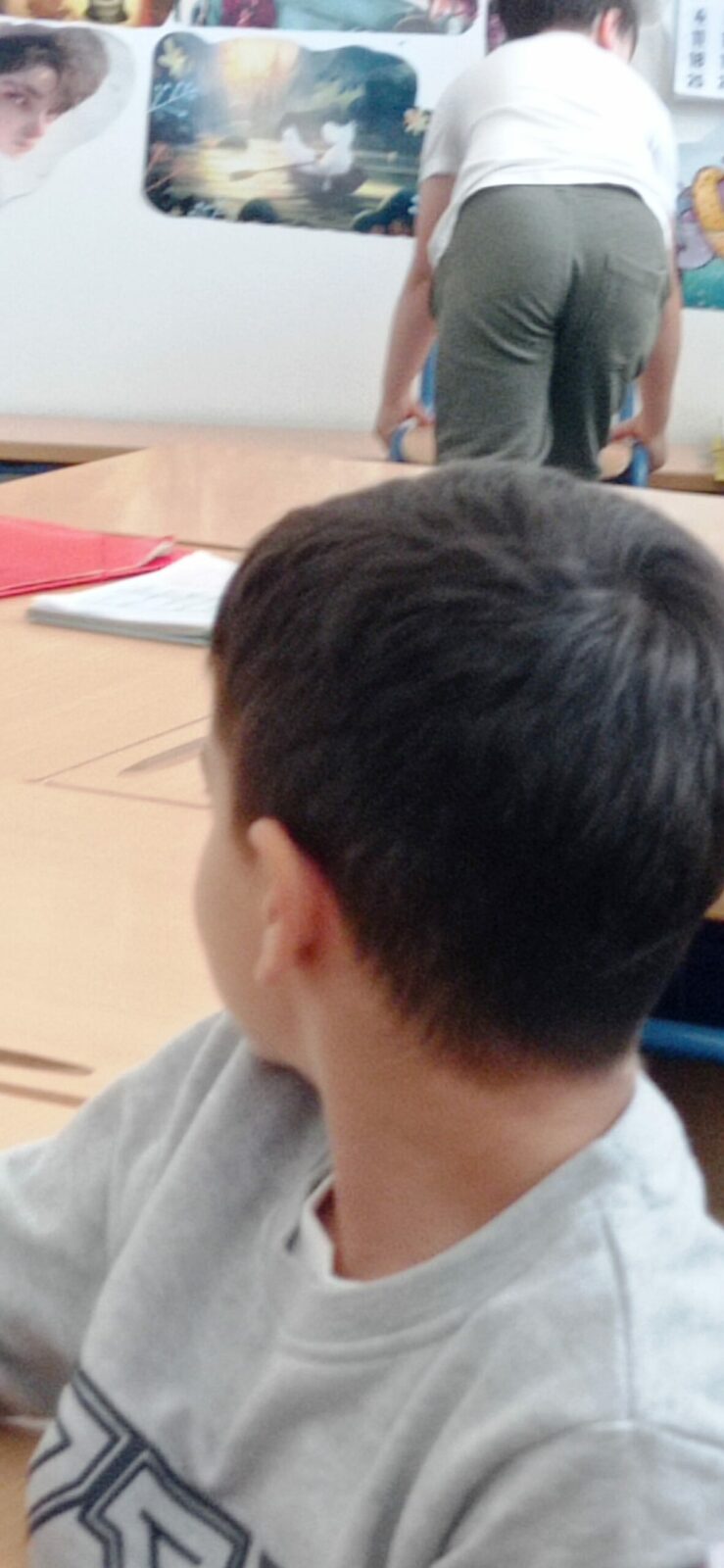 En estas fotos podéis verlos/as escondidos/as debajo de las mesas para dar una sorpresa a sus compañeros/as cuando van entrando o incluso a mí, que ya estoy en la clase y veo incluso cómo se esconden, jjjajajjjaja.