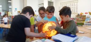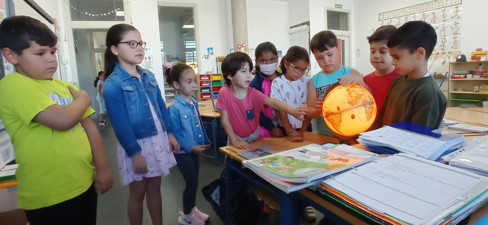 En las fotos que seguidamente compartimos con vosotros/as, un alumno había traído una bola del mundo y se acordaron de la guerra que sufren miles de personas en estos momentos, así que decidieron buscar Ucrania y Rusia la esfera. ¡Y lo encontraron!