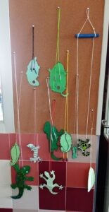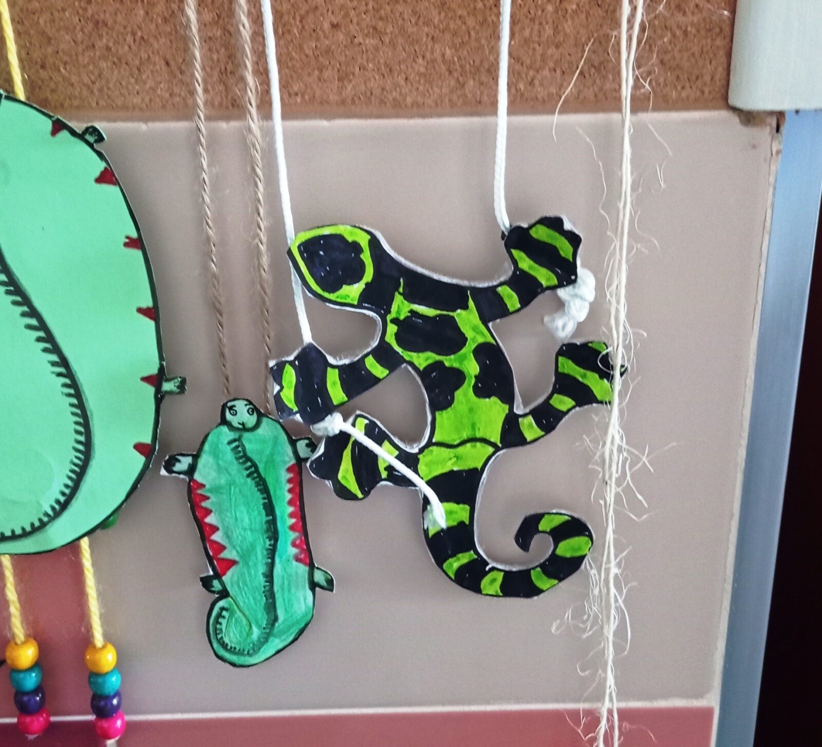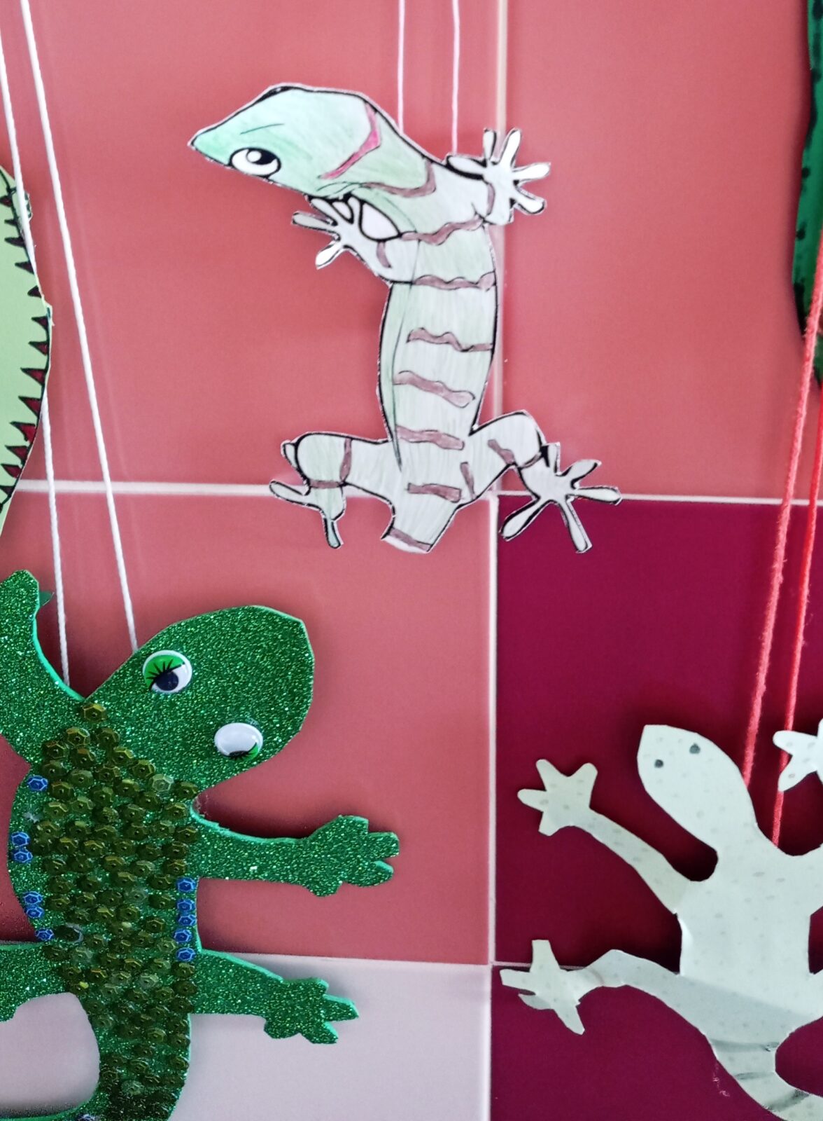 Compartimos estas fotos de unas iguanas trepadoras que realizaron en el área de ciencias naturales. El alumnado de 1º se ha divertido haciéndolas trepar por la pared.